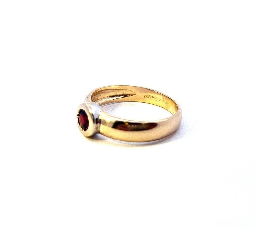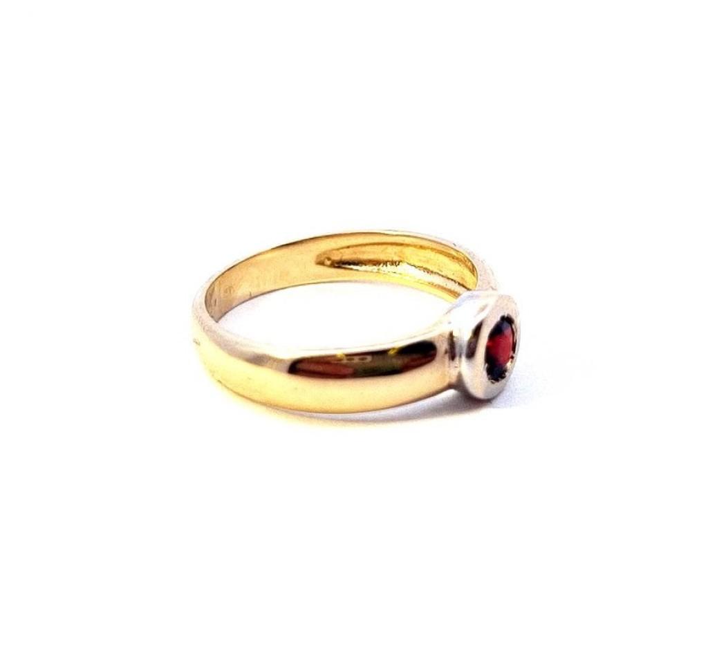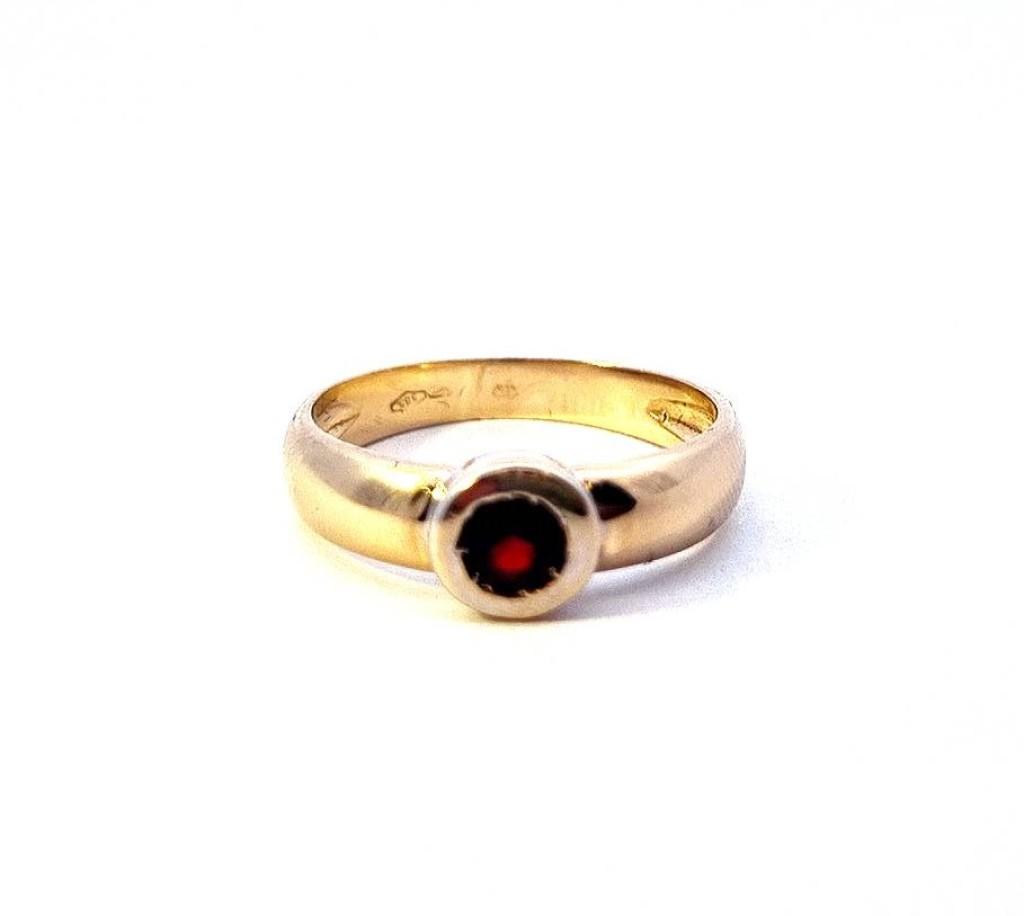 Zlatý prsten s červeným kamenem, almandin, vel. 52
