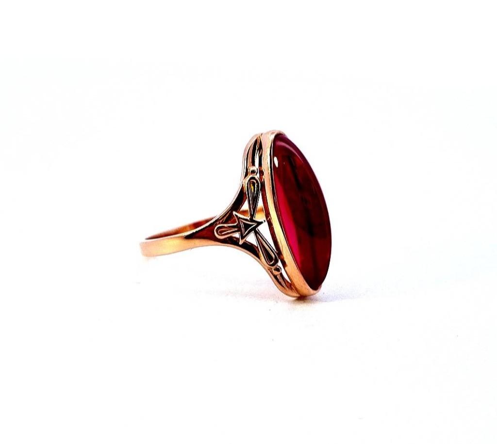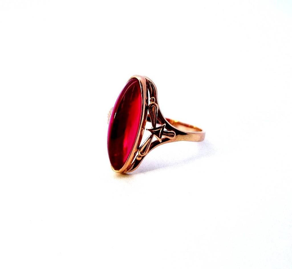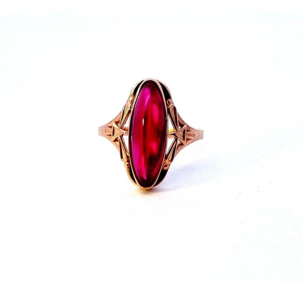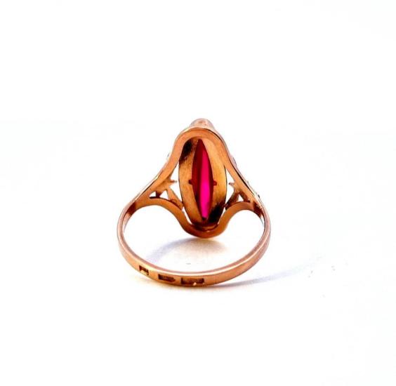 Zlatý prsten s červeným kamenem, rubín, vel. 56