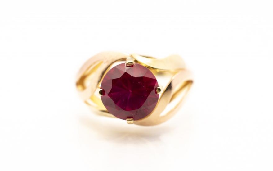 Zlatý prsten s červeným kamenem, vel. 57