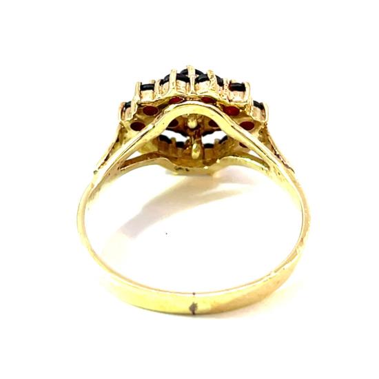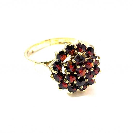 Zlatý prsten o ryzosti 585/1000, punc labuť. Velikost 54, váha 4,06 g, průměr ozdoby 14 mm.
