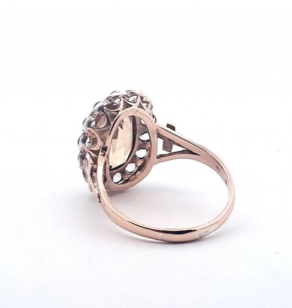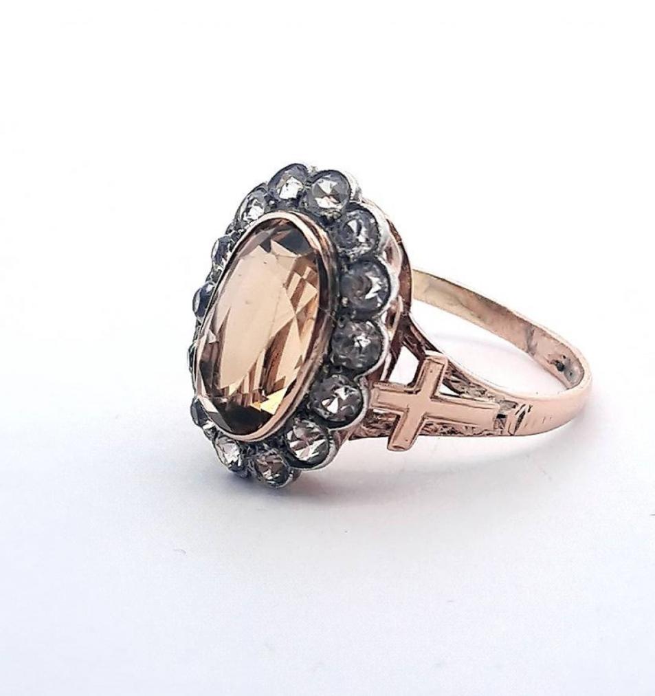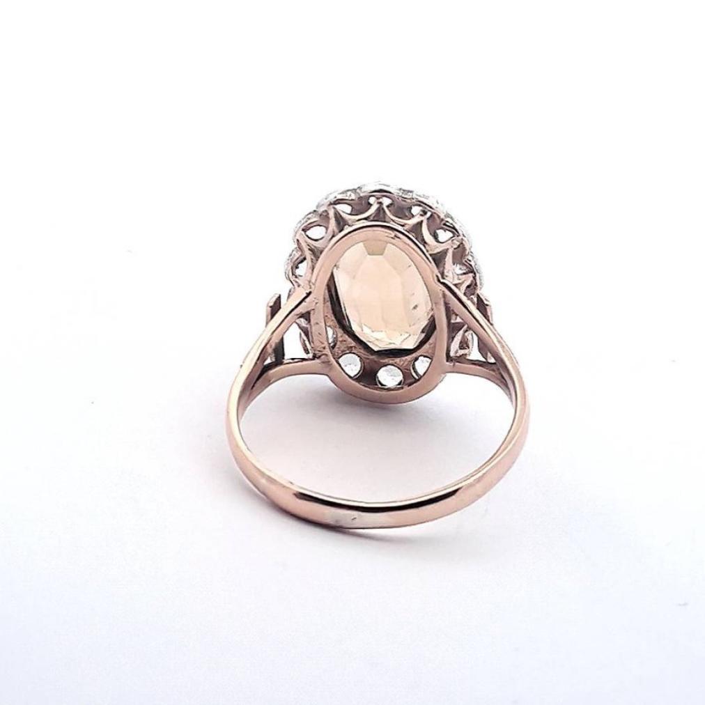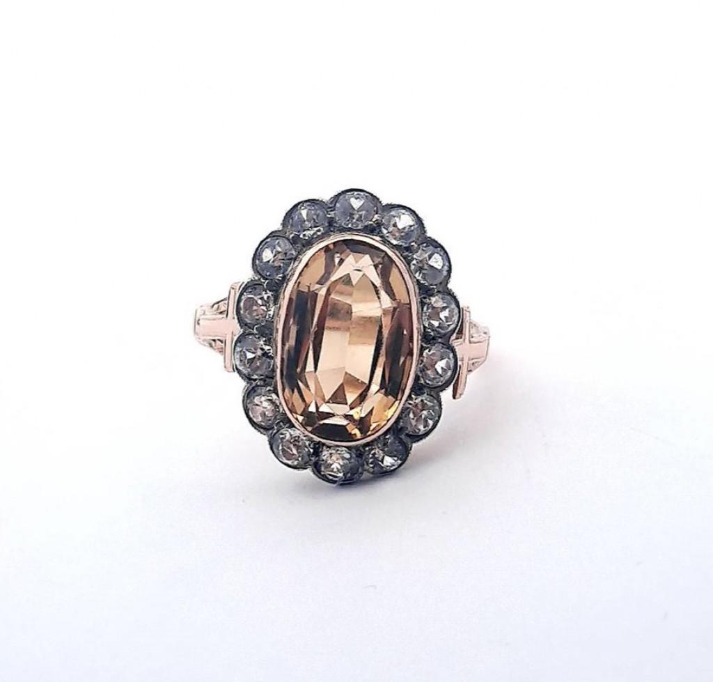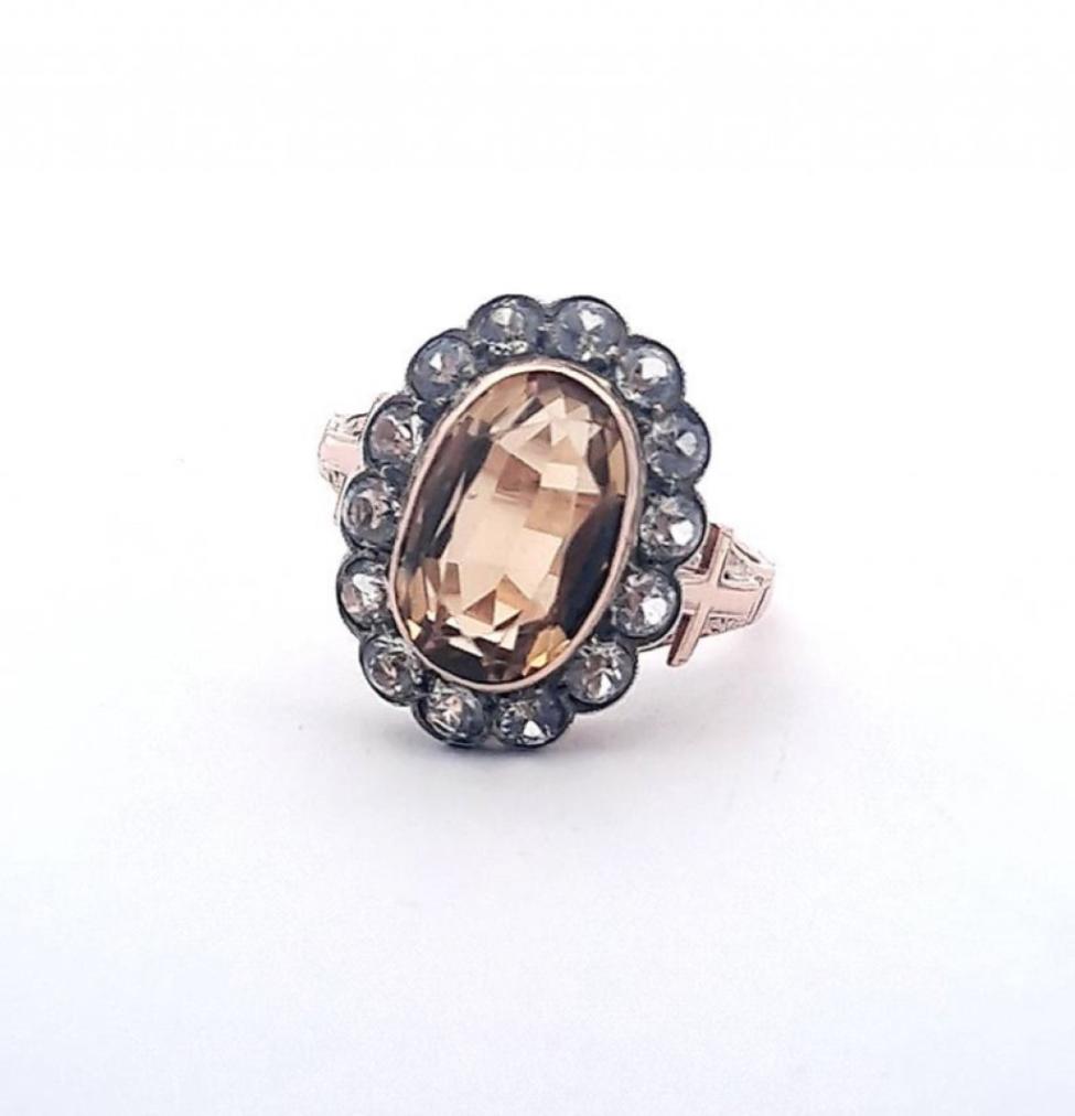 Zlatý prsten s citrínem a leukosafíry, vel. 73