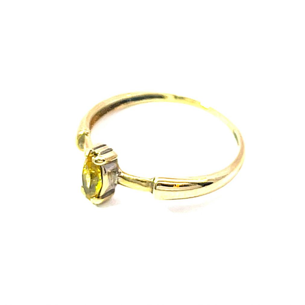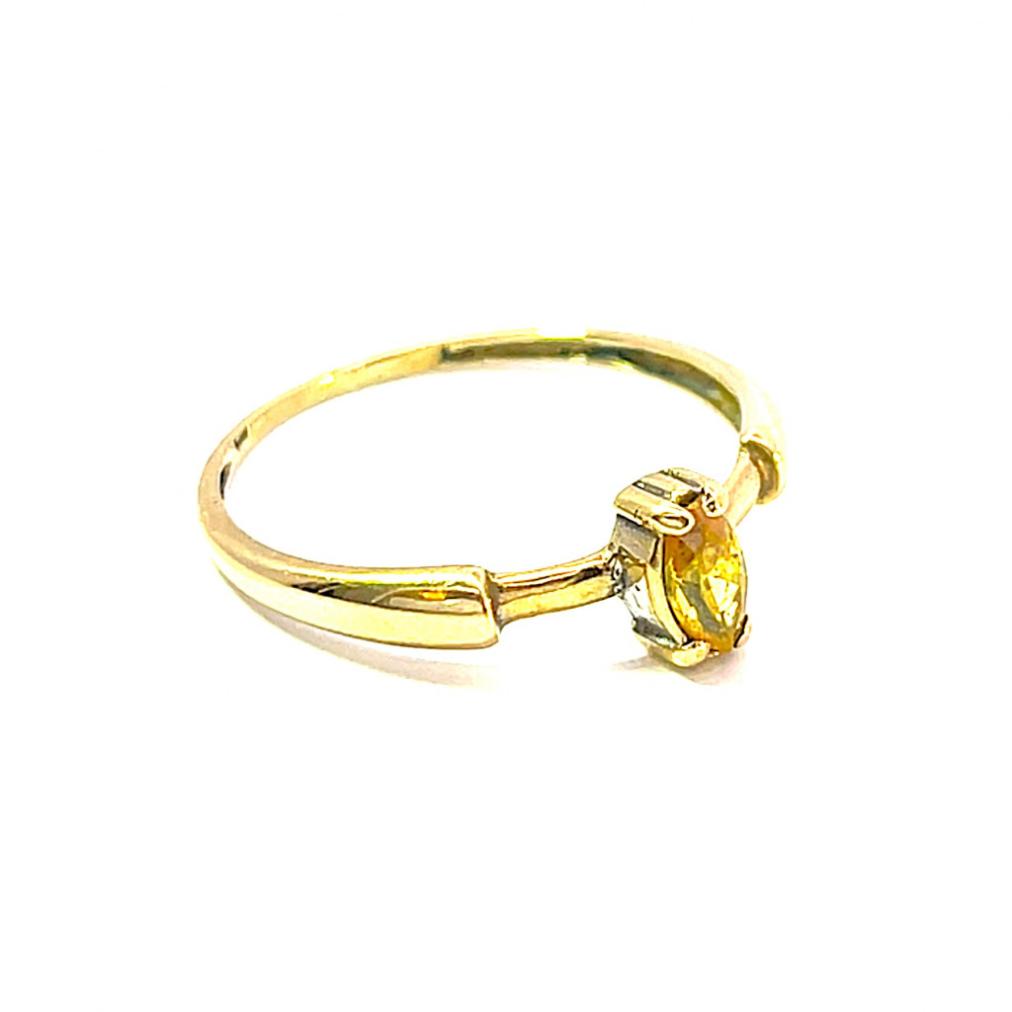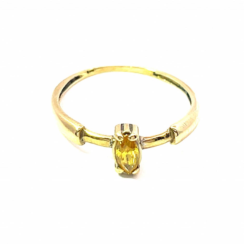 Zlatý prsten o ryzosti 585/1000 s puncem labuť zdobený citrínem. Celková váha je 1,41 g, velikost prstene 54,5. Rozměry kamene jsou 6 x 3 mm. Kámen je syntetický.