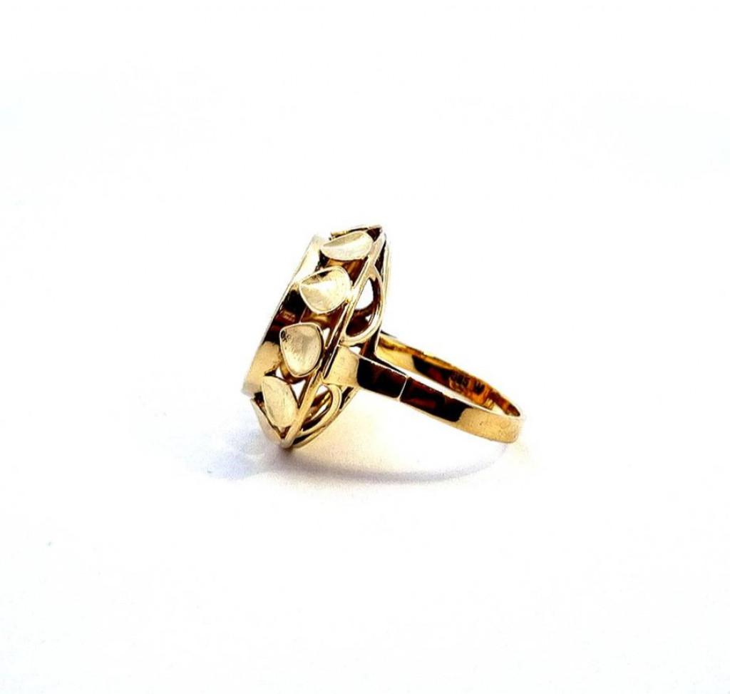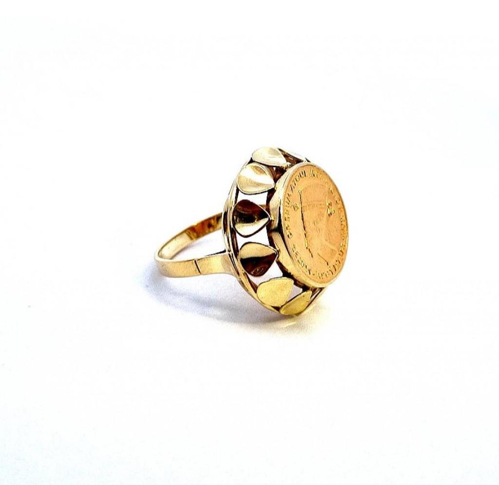 Zlatý prsten o ryzosti 585/1000, punc labuť. Do prstenu vsazena mince o ryzosti 980/1000, rok ražby 1964, váha cca 1,5 g . Velikost 54,5, celková váha 6,71 g, průměr hlavy prstenu 22 mm, průměr mince 16 mm.