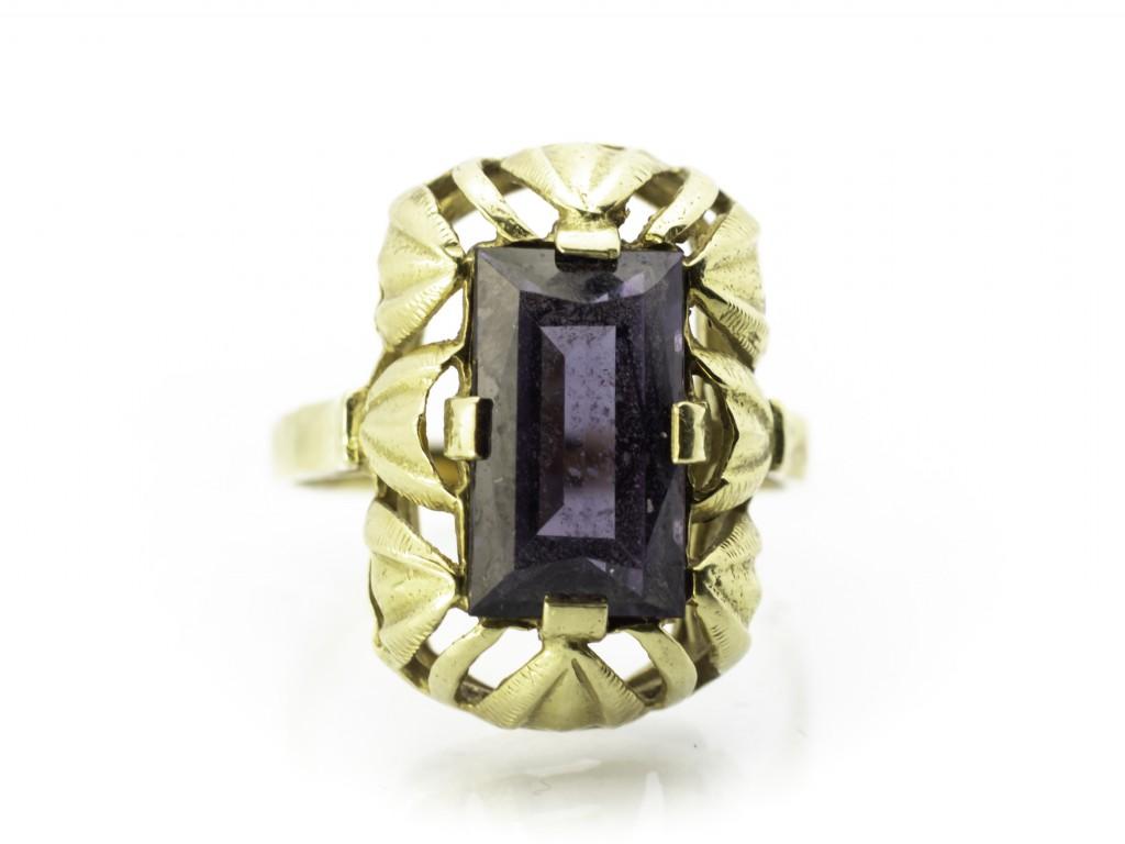 Zlatý prsten s fialovým kamenem - ametyst , vel. 54