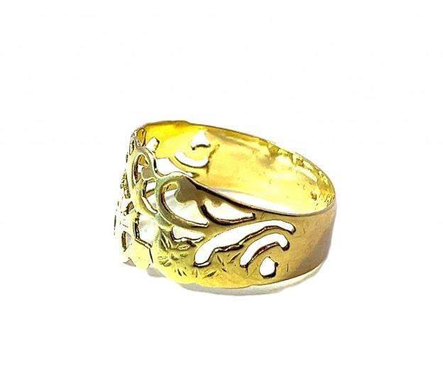 Zlatý prsten s florálním reliéfem, vel. 60
