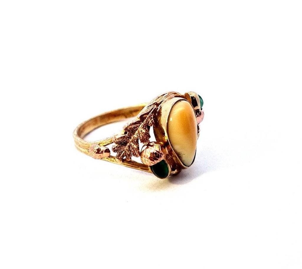 Zlatý prsten s grandlí a chryzoprasem, vel. 53