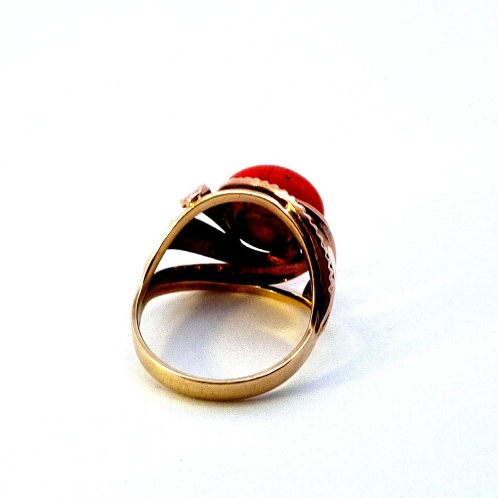 Zlatý prsten o ryzosti 585/1000, punc čejka. Velikost 51, váha 5,55 g, průměr korálu 11 mm, šířka hlavy prstenu v nejširším bodě 16 mm.