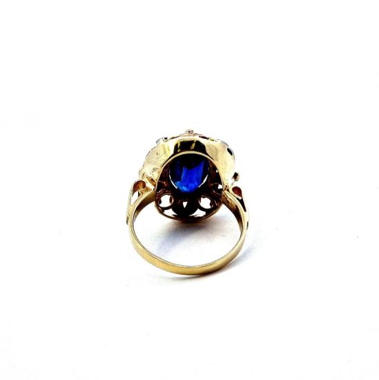 Zlatý prsten s modrým kamenem - safír, vel. 53