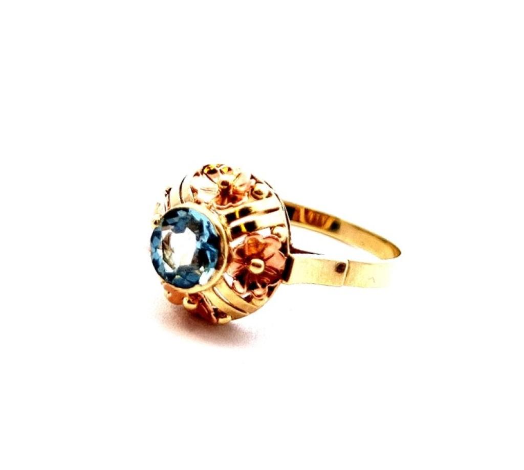 Zlatý prsten s modrým kamenem - topaz, vel. 55