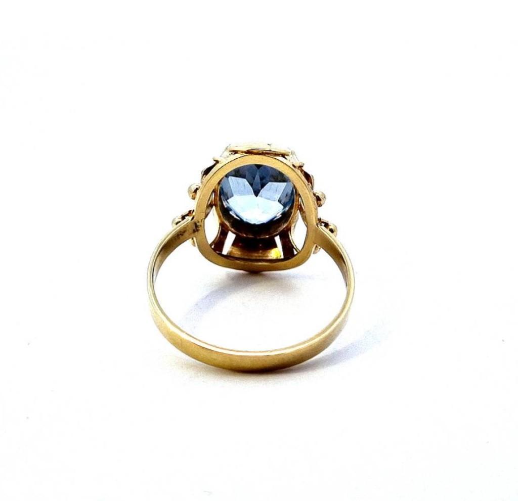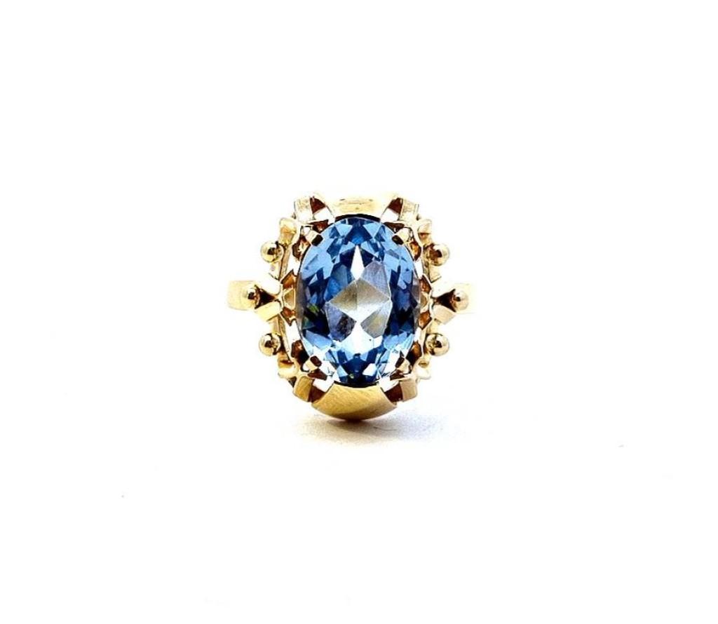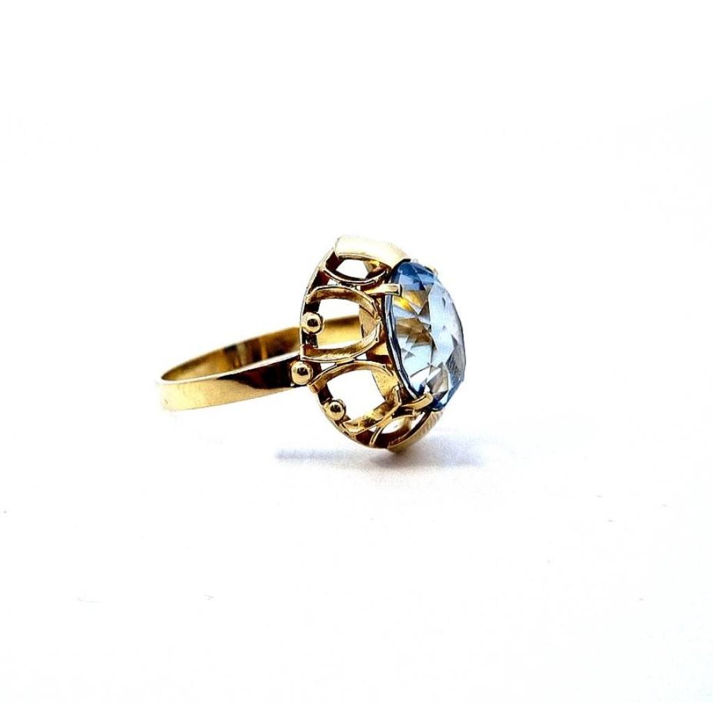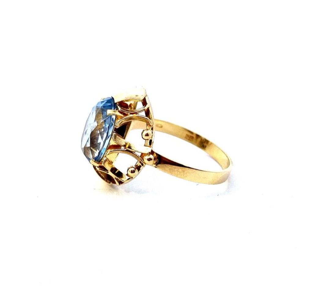Zlatý prsten s modrým kamenem, topaz, vel. 60