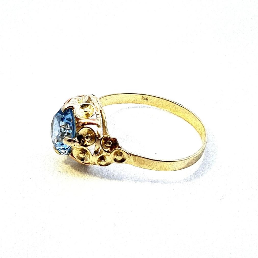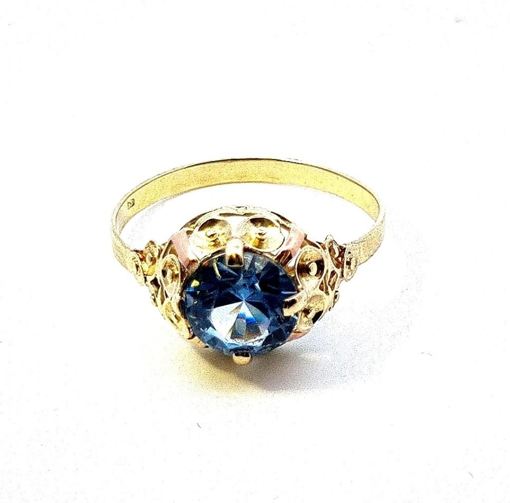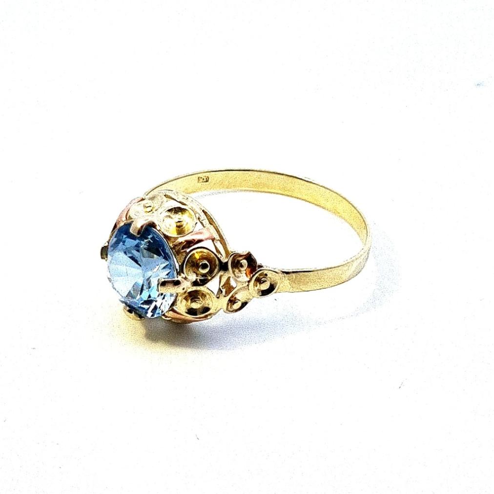 Zlatý prsten s modrým kamenem - topaz, vel. 70
