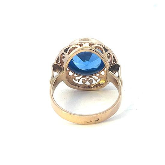 Zlatý prsten s modrým kamenem, vel. 56