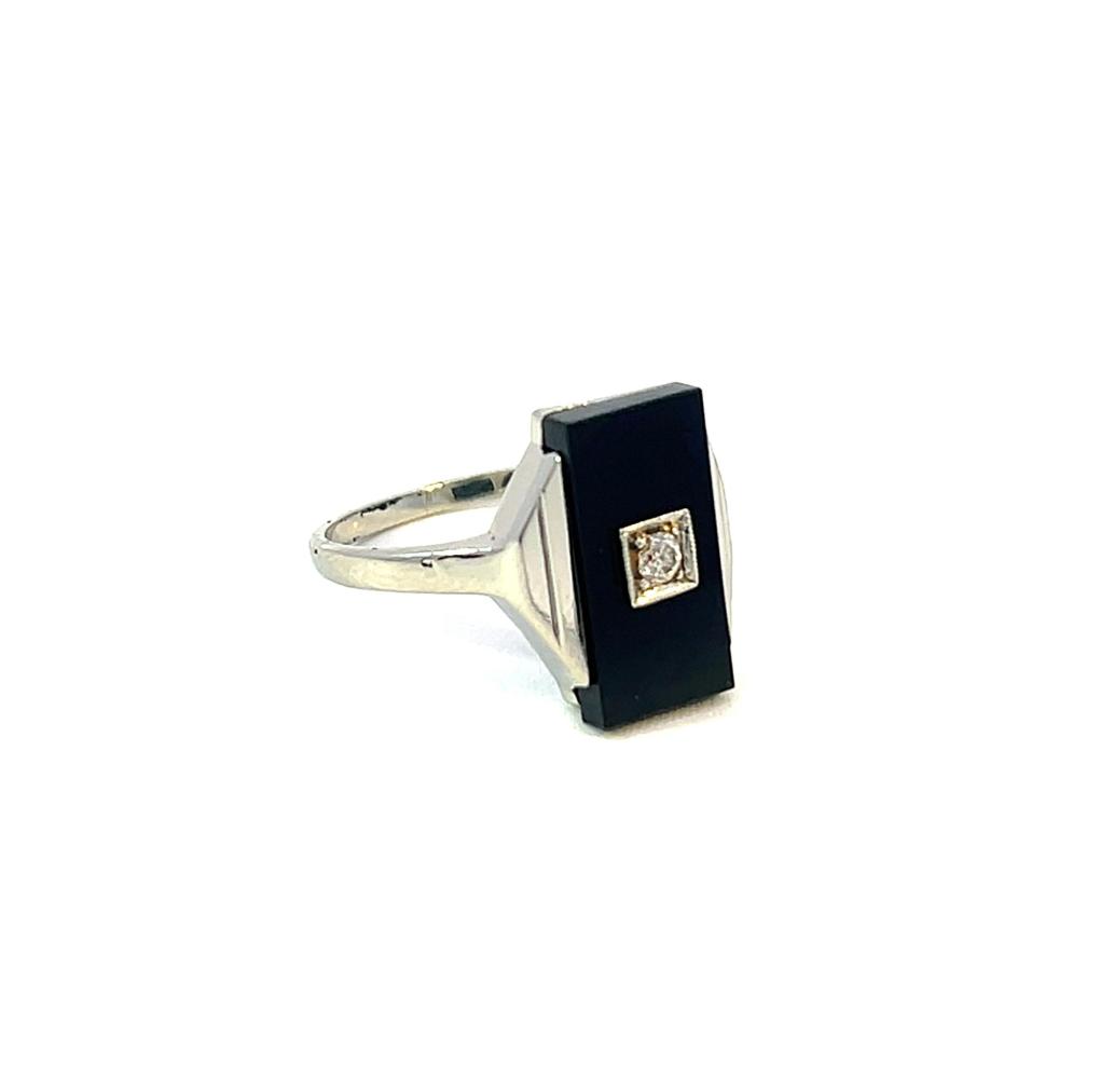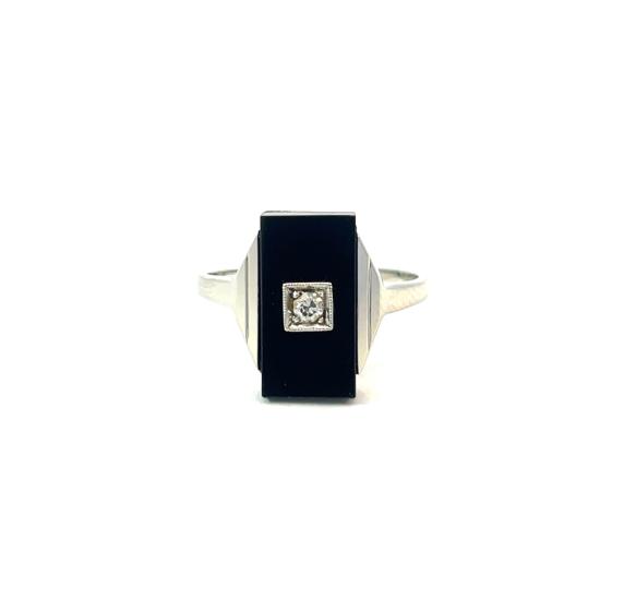 Zlatý prsten s onyxem a diamantem, vel. 53