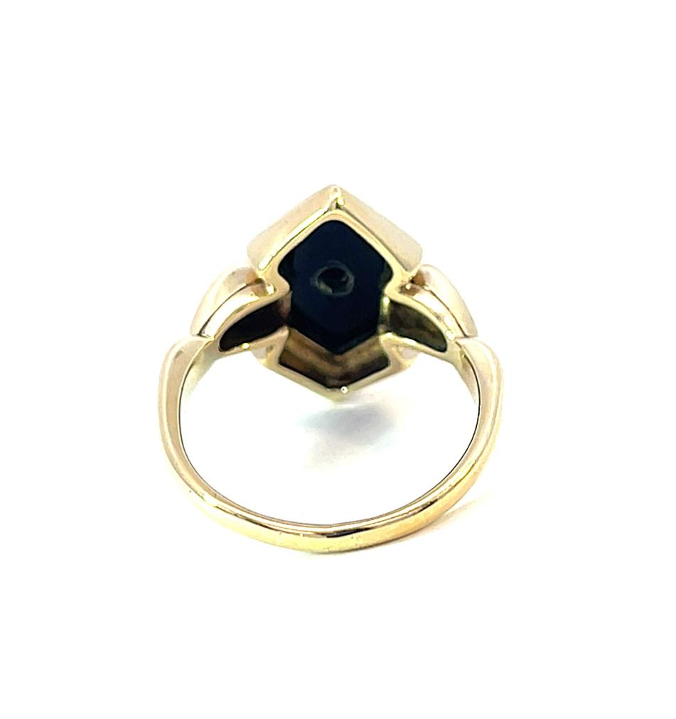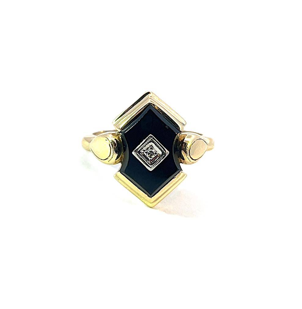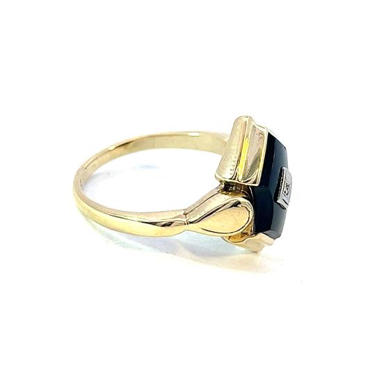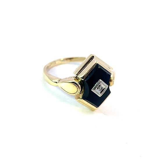 Zlatý prsten s onyxem a diamantem, vel. 54