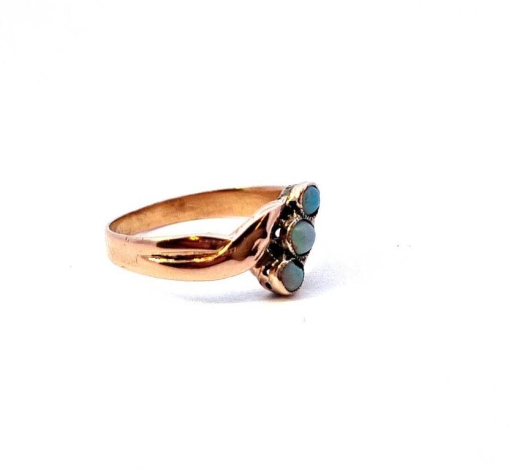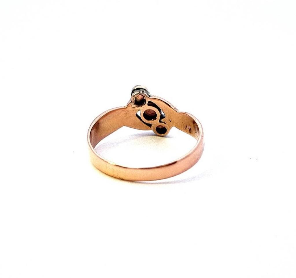 Zlatý prsten o ryzosti 585/1000, punc labuť. Velikost 55, váha 2,51 g, v nejširším bodě 10 mm.