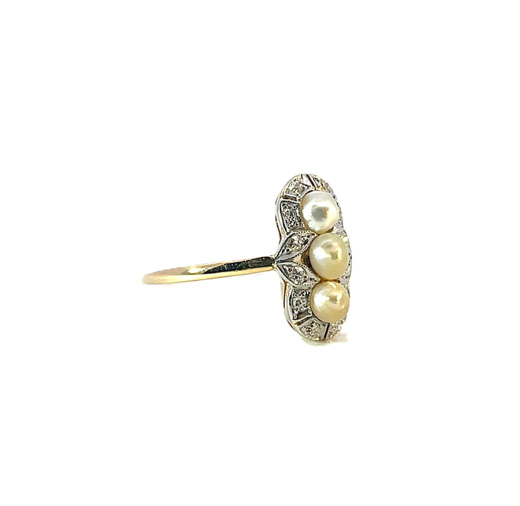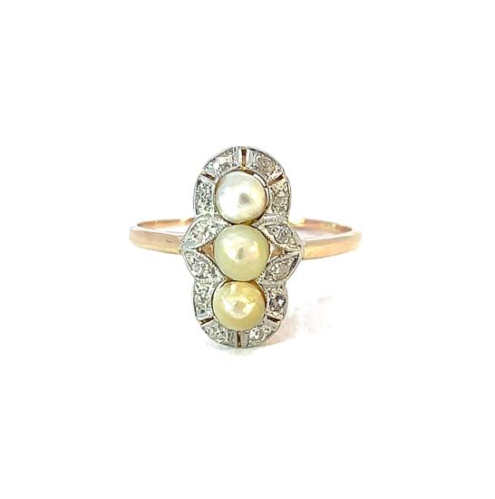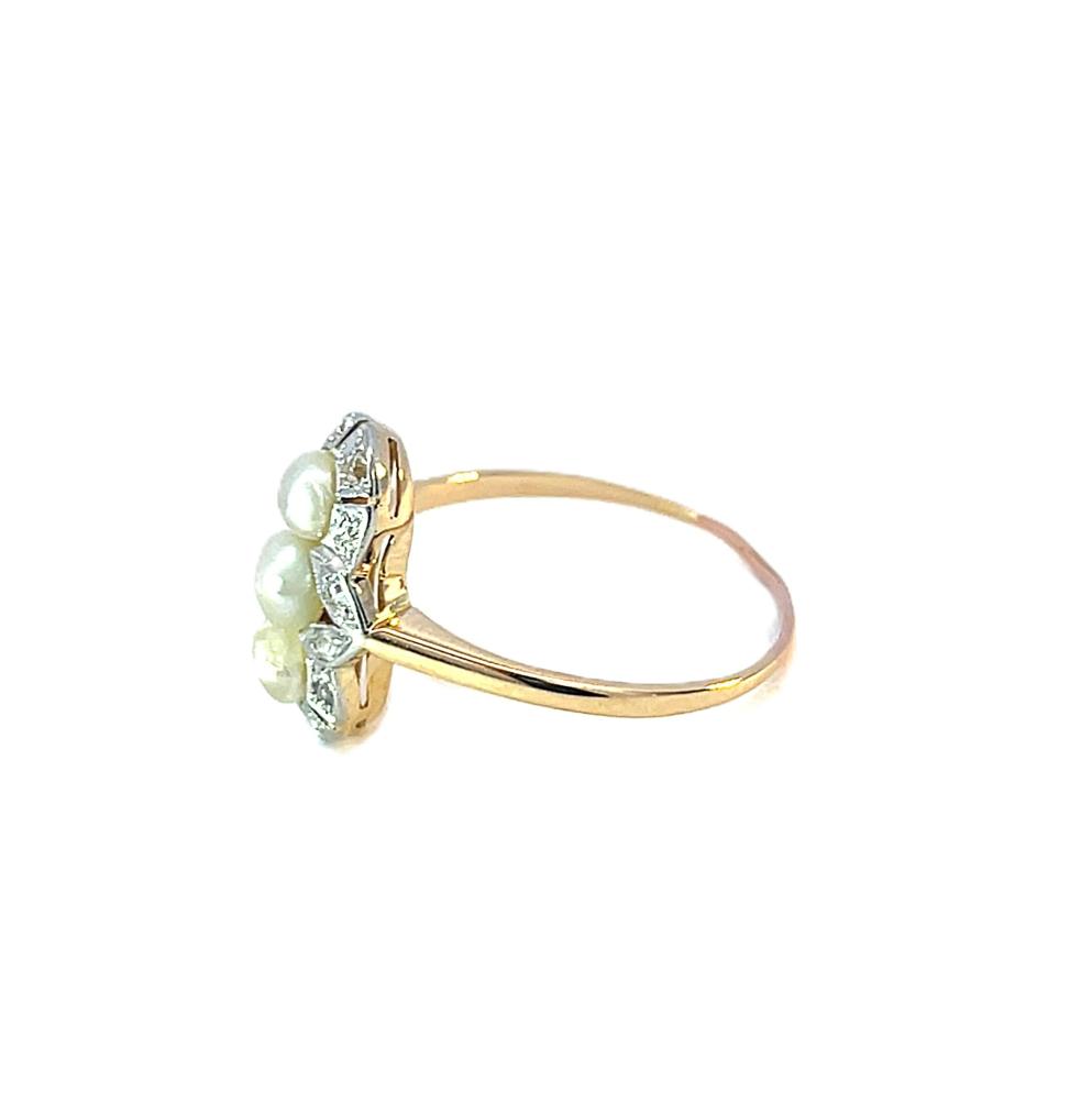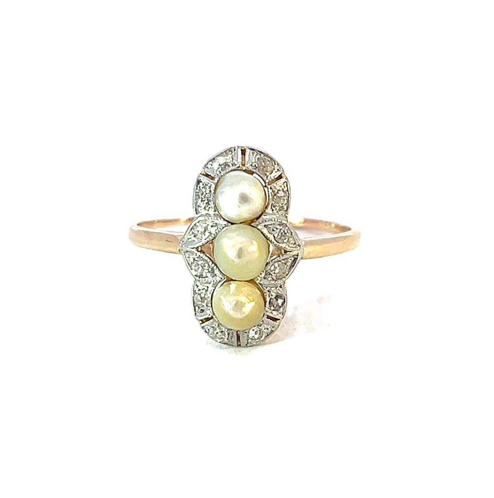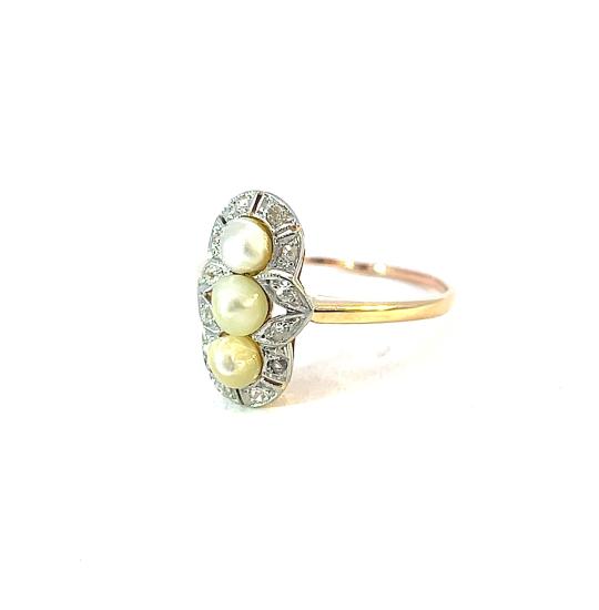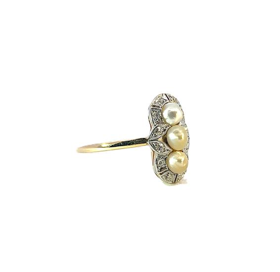 Zlatý prsten s perlami a diamanty, vel. 55,5
