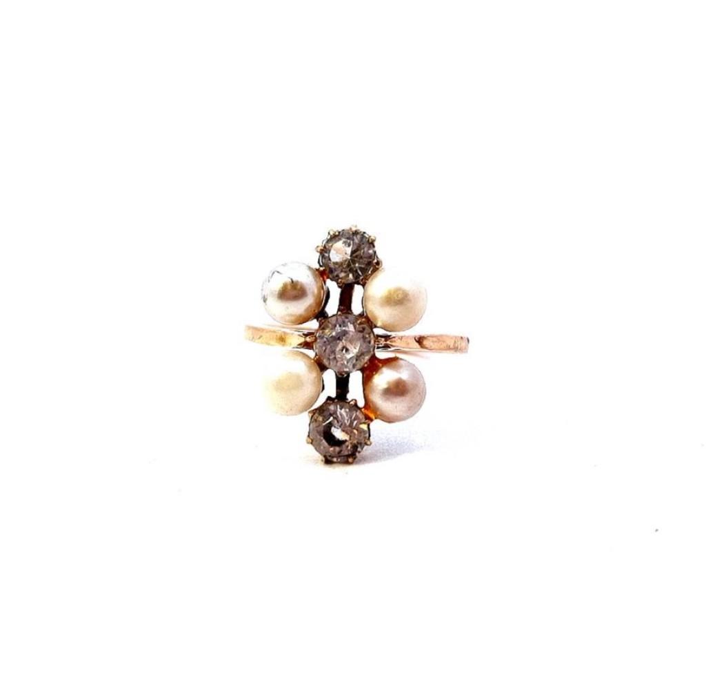 Zlatý prsten s perlami a zirkony, vel. 54