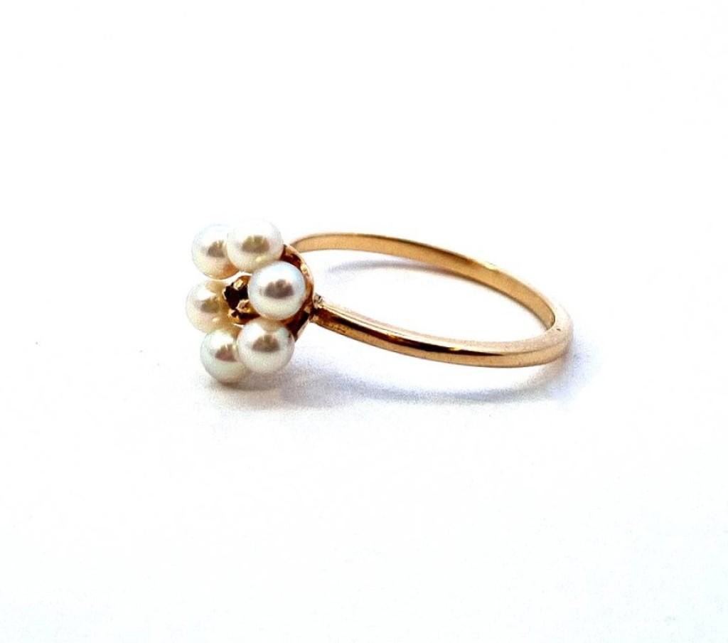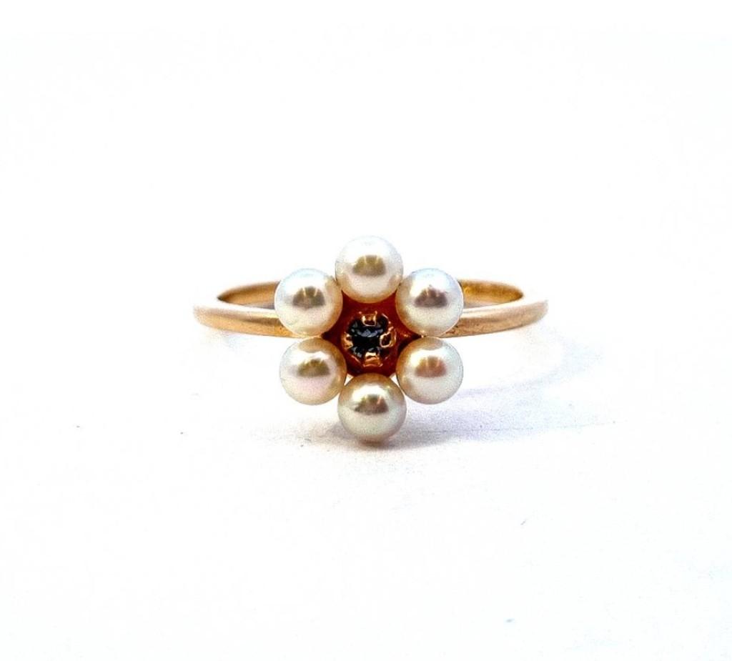 Zlatý prsten s perličkami a modrým kamínkem, vel. 52