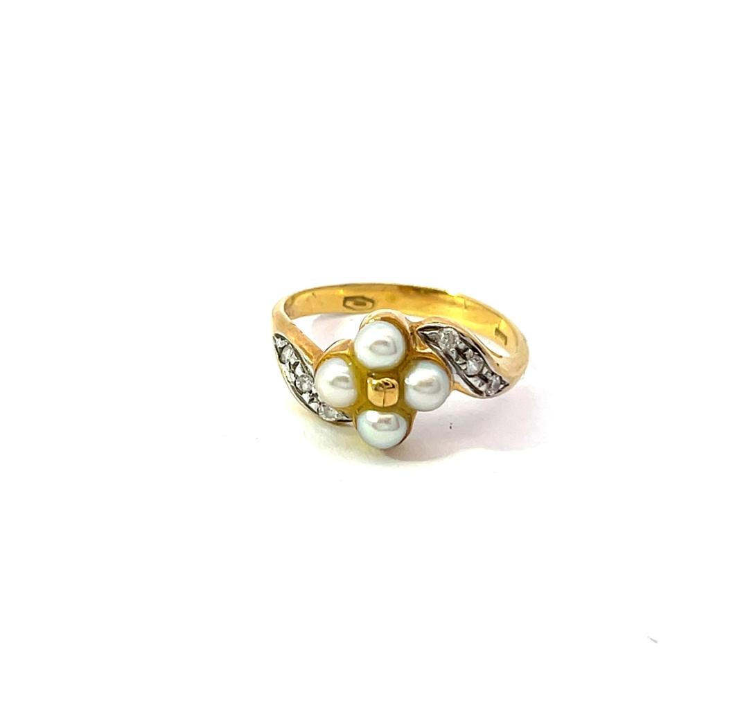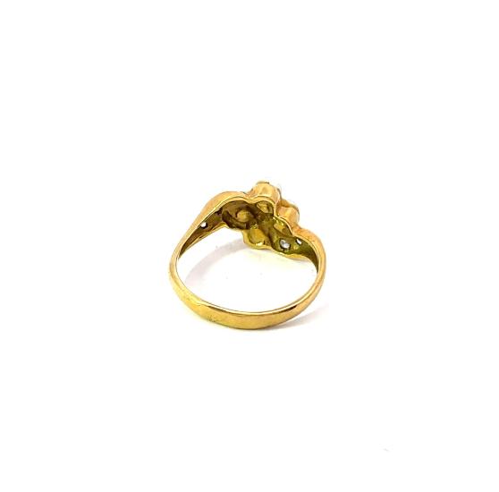 Zlatý prsten s perličkami a zirkony, 18 k, vel. 51