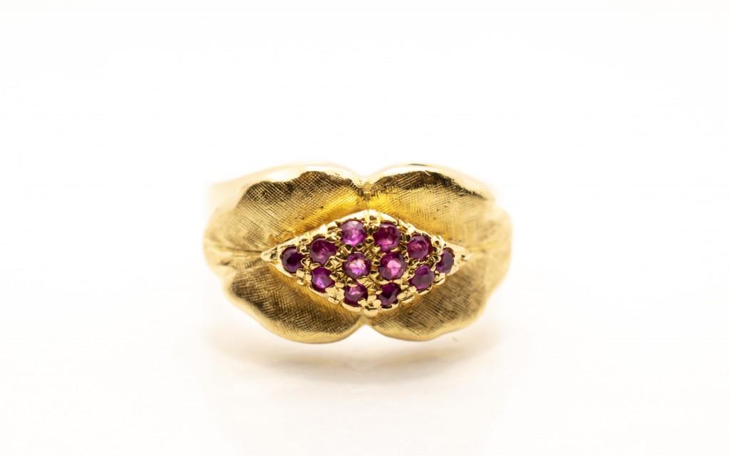 Zlatý prsten o ryzosti 750/1000, punc kohout, váha 7,10 g, velikost 55, v nejširším bodě 11 mm.