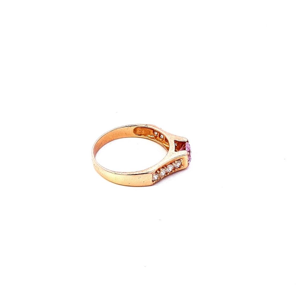 Zlatý prsten s růžovým kamenem a zirkony, vel. 53