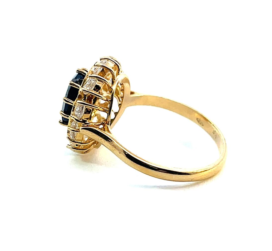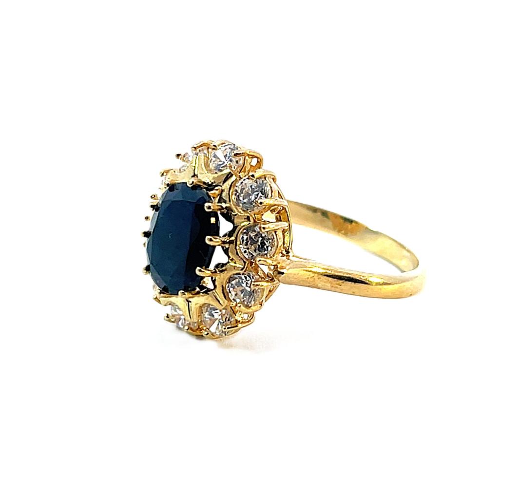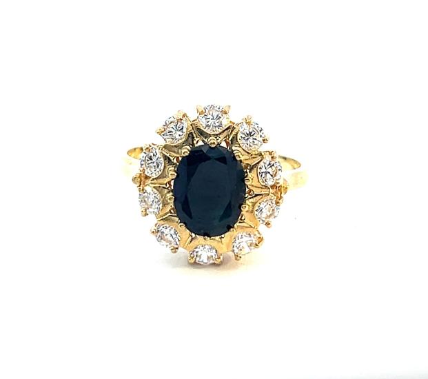 Zlatý prsten se safírem a zirkony, vel. 58