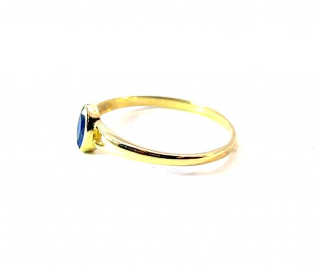 Zlatý prsten o ryzosti 585/1000, punc labuť. Velikost 57, váha 1,20 g, v nejširším bodě 6 mm. Kámen je syntetický.