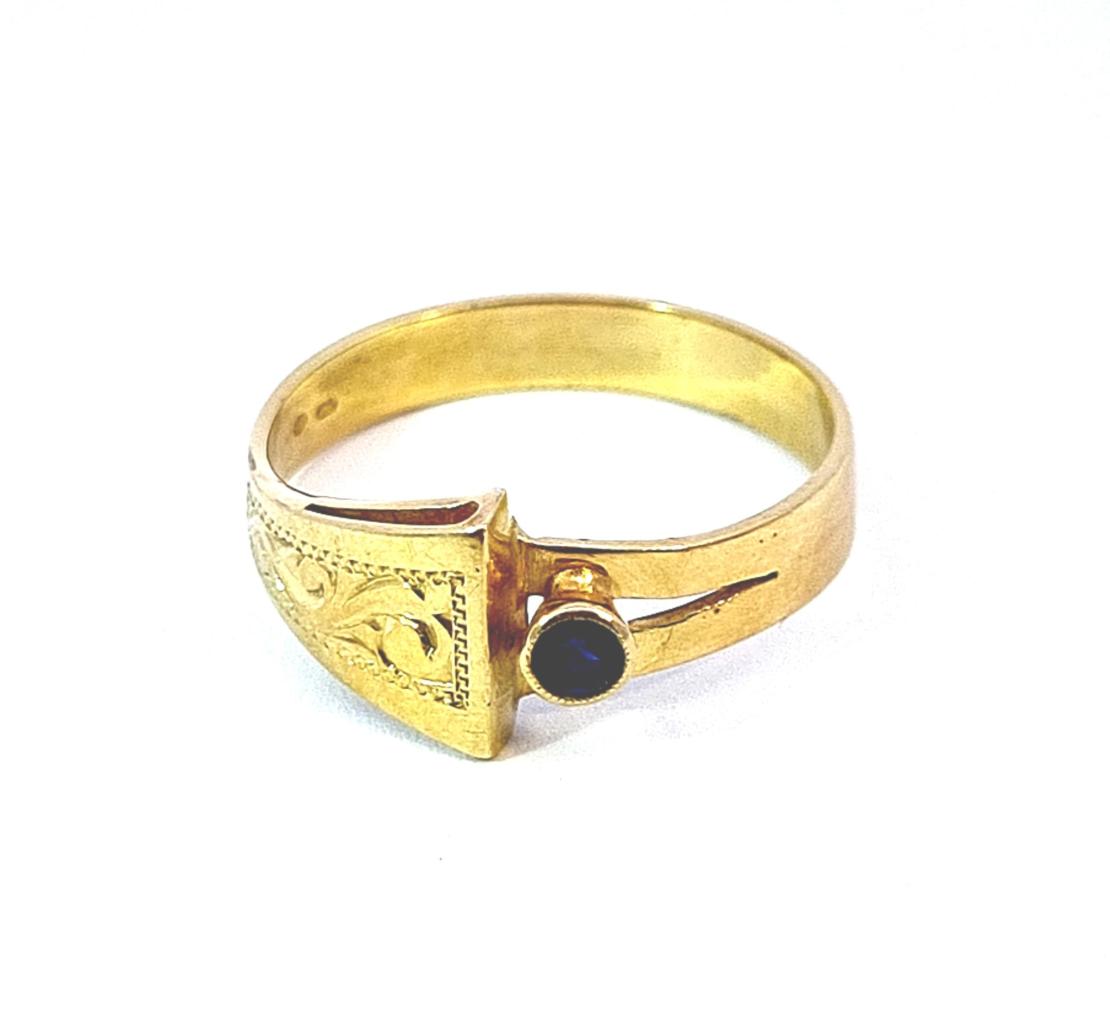 Zlatý prsten se safírem, vel. 59