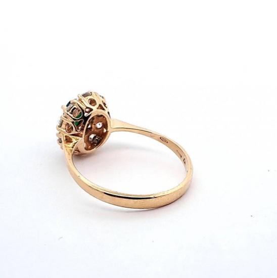 Zlatý prsten se smaragdem a zirkony, vel. 58