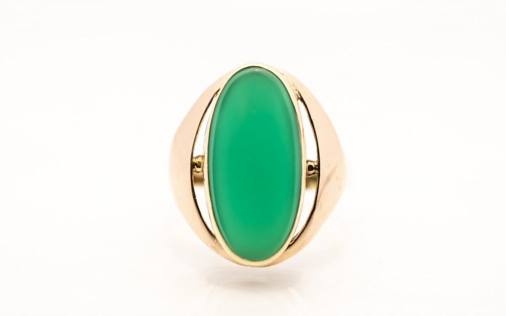 Zlatý prsten se zeleným kamenem - chryzopras, vel. 54