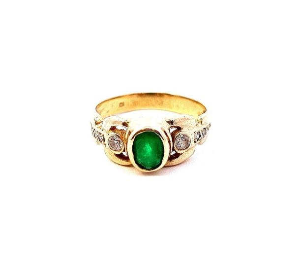 Zlatý prsten se zeleným kamenem, vel. 55