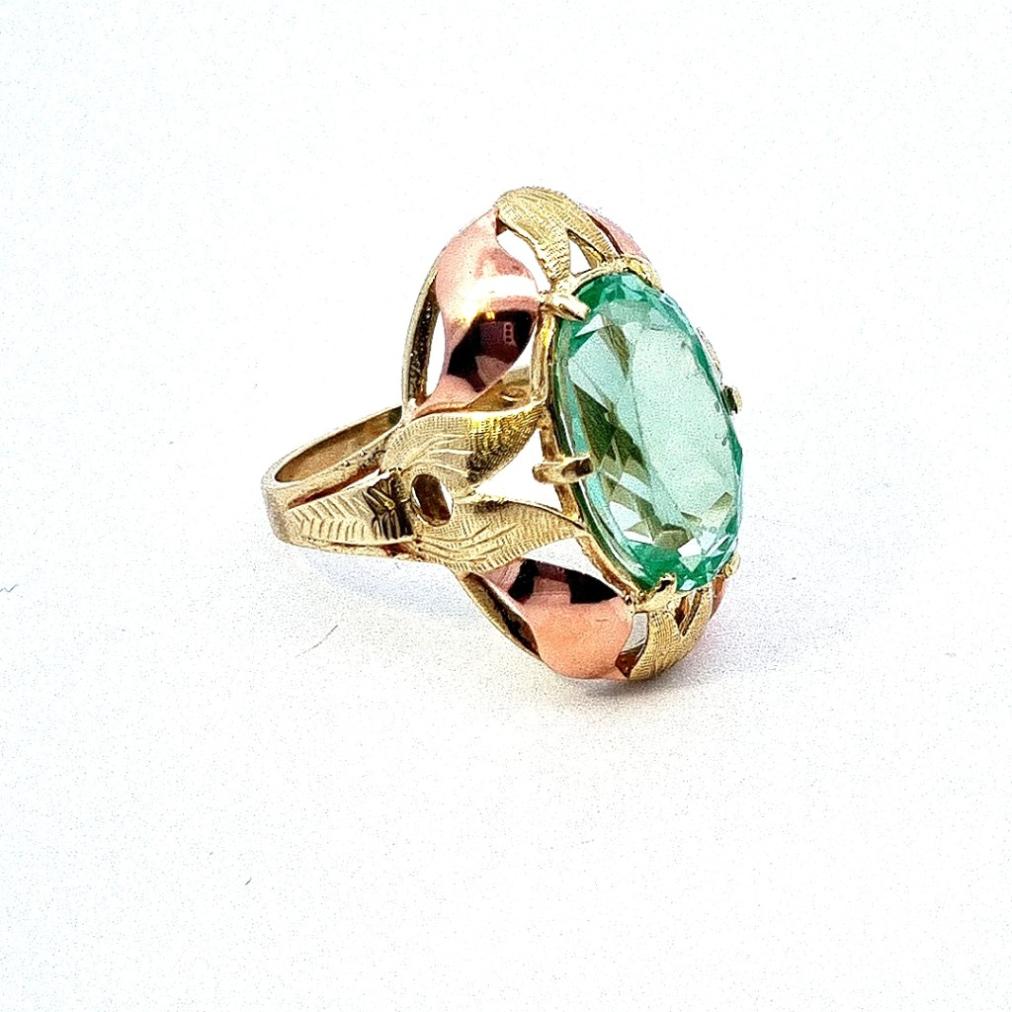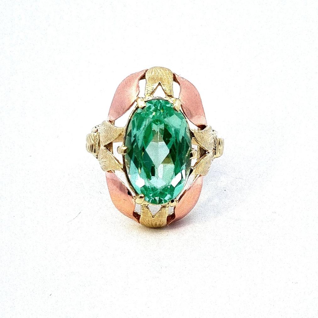 Zlatý prsten se zeleným kamenem, vel. 58,5