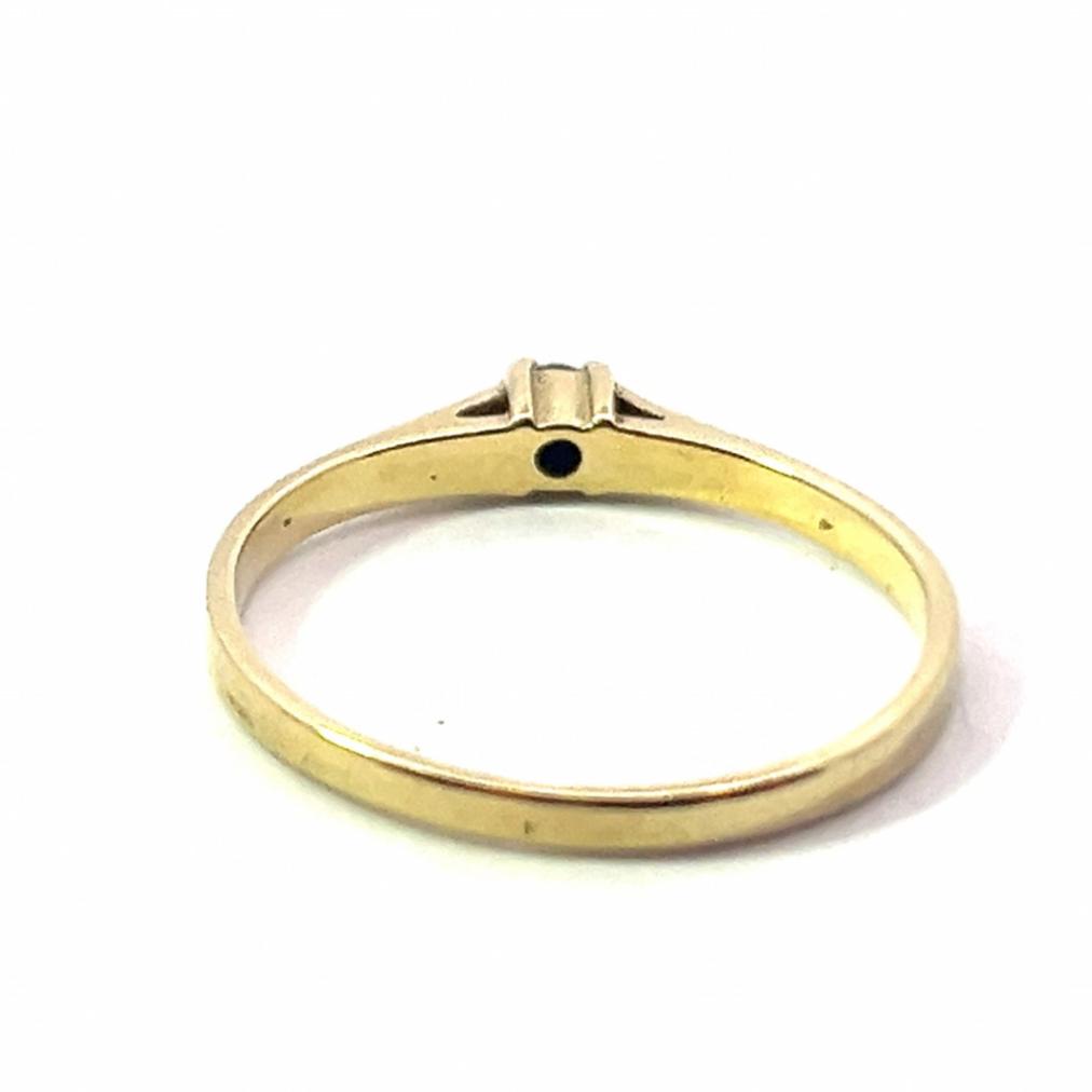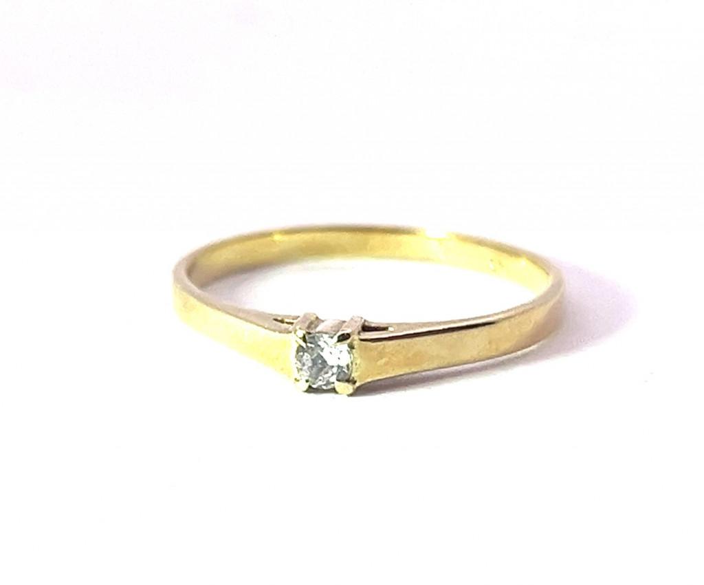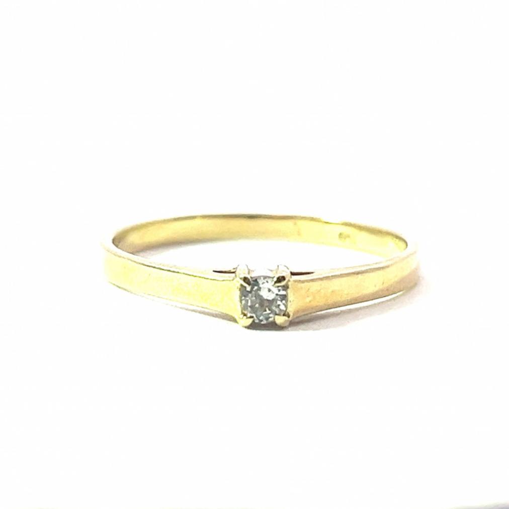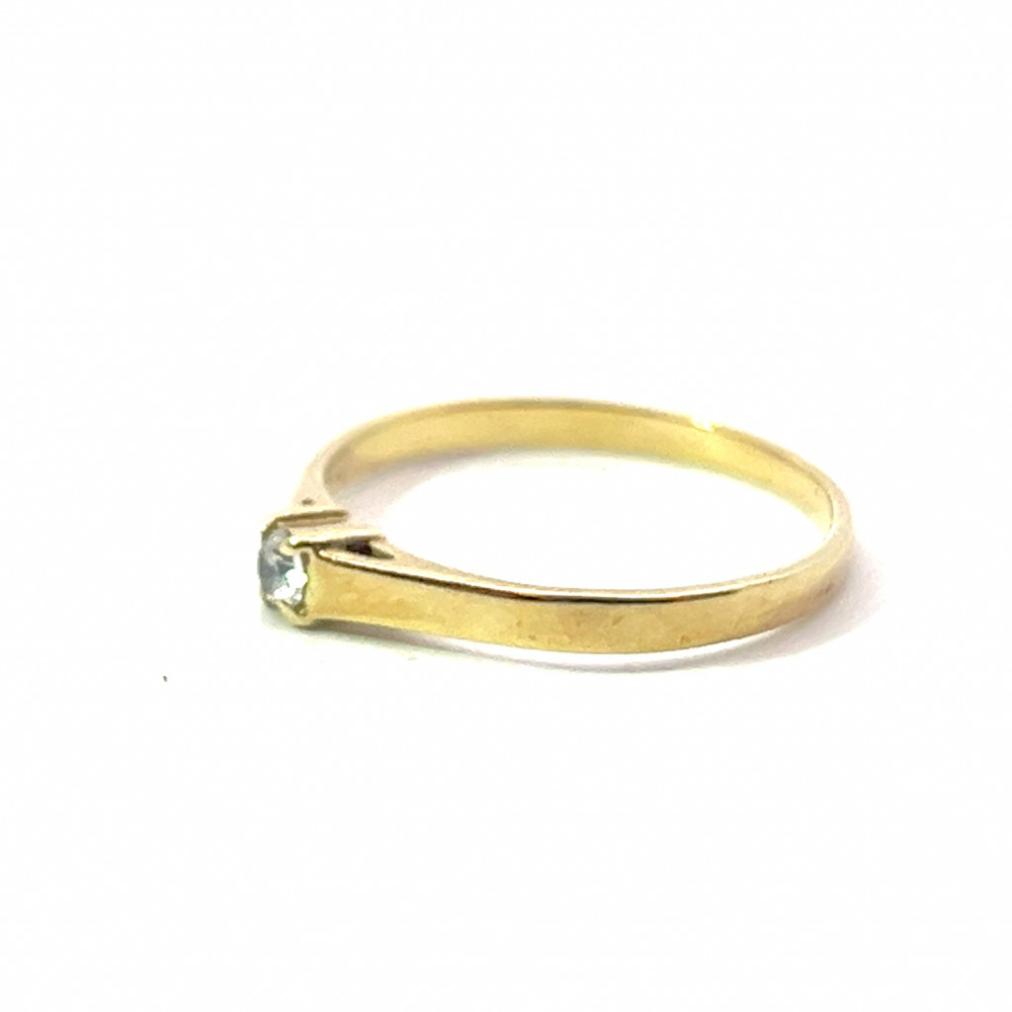 Zlatý prsten o ryzosti 585/1000, punc labuť. Velikost 52, váha 1,46 g, v nejširším bodě 3 mm.