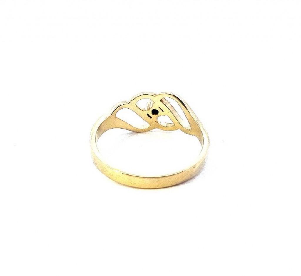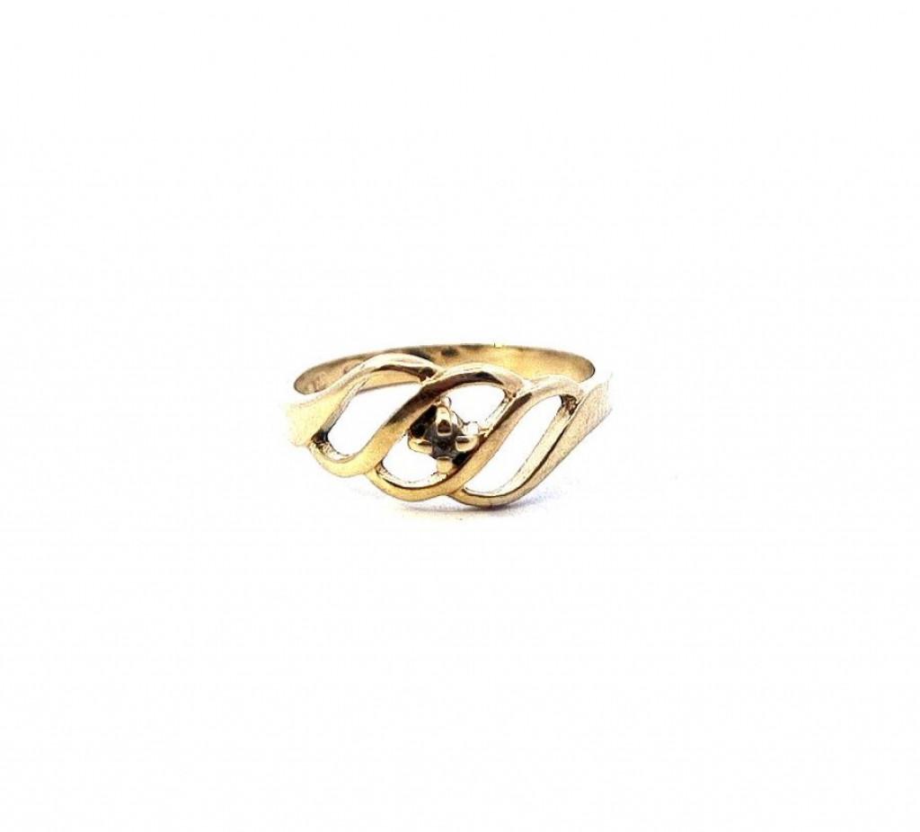 Zlatý prsten o ryzosti 585/1000, punc čejka. Velikost 52, váha 2,24 g, v nejširším bodě 8 mm.