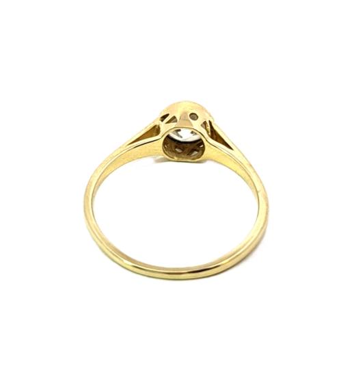 Zlatý prsten o ryzosti 585/1000, punc labuť. Velikost 54,5, váha 2,07 g, průměr kamene 6,5 mm.