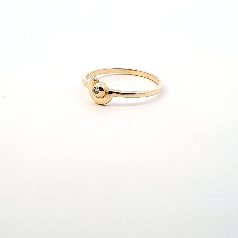 Zlatý prsten o ryzosti 585/1000, punc labuť. Velikost 57,5, váha 1,61 g, šířka v nejširším bodě 6 mm.