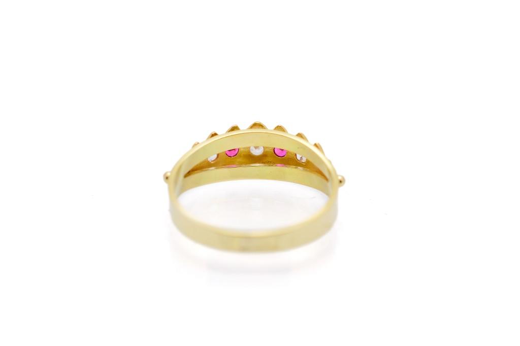Zlatý prsten se zirkony a červenými kamínky, vel. 57
