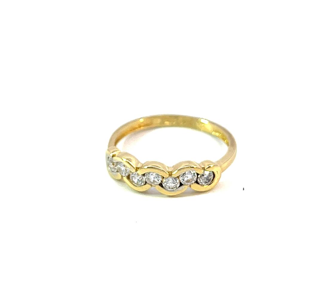Zlatý prsten o rzosti 585/1000, punc labuť. Velikost 52,5, váha 1,95 g, v nejširším bodě 5 mm.