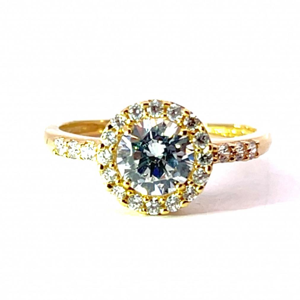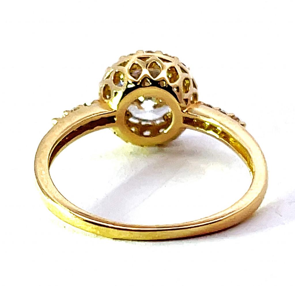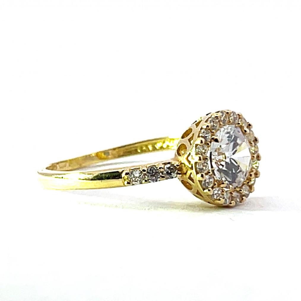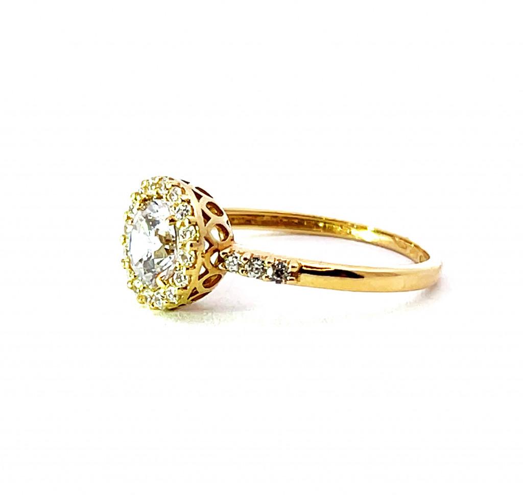 Zlatý prsten o ryzosti 585/1000, punc labuť. Velikost 53, váha 2,14 g, průměr hlavy prstenu 9 mm.