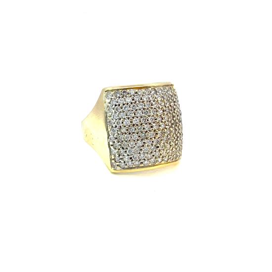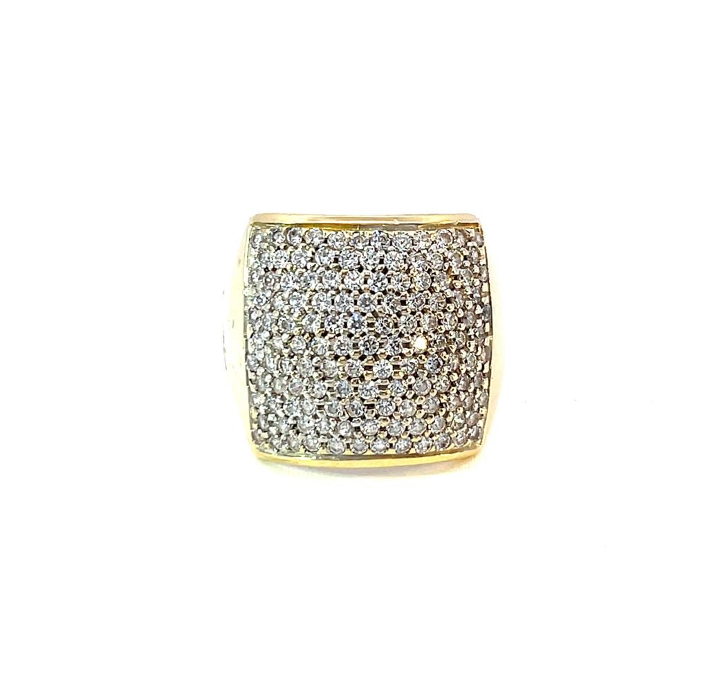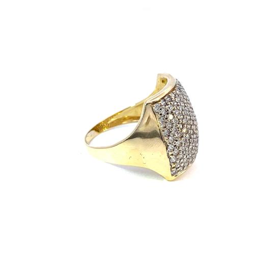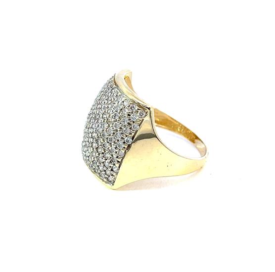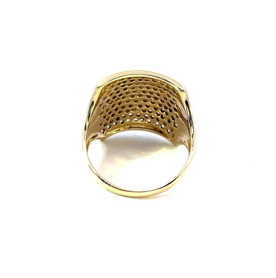 Zlatý prsten o ryzosti 585/1000, punc labuť. Váha 8,46 g, velikost 63, rozměr hlavy prstenu 20 x 19 mm.