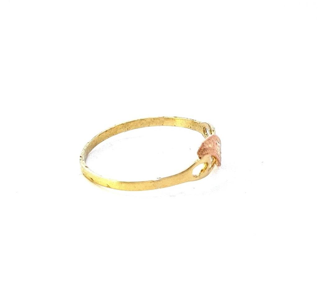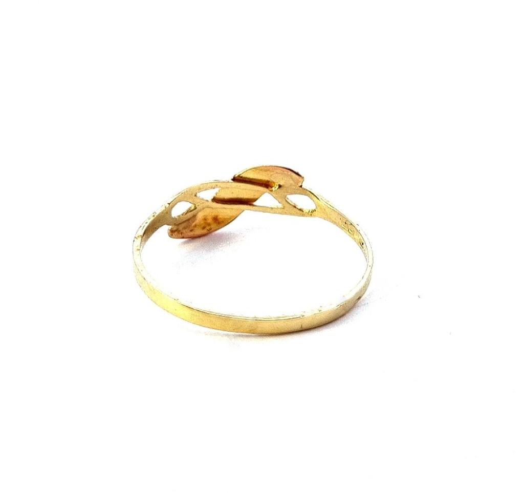 Zlatý prsten o ryzosti 585/1000, punc labuť. Váha 0,99 g, v nejširším bodě 6 mm.