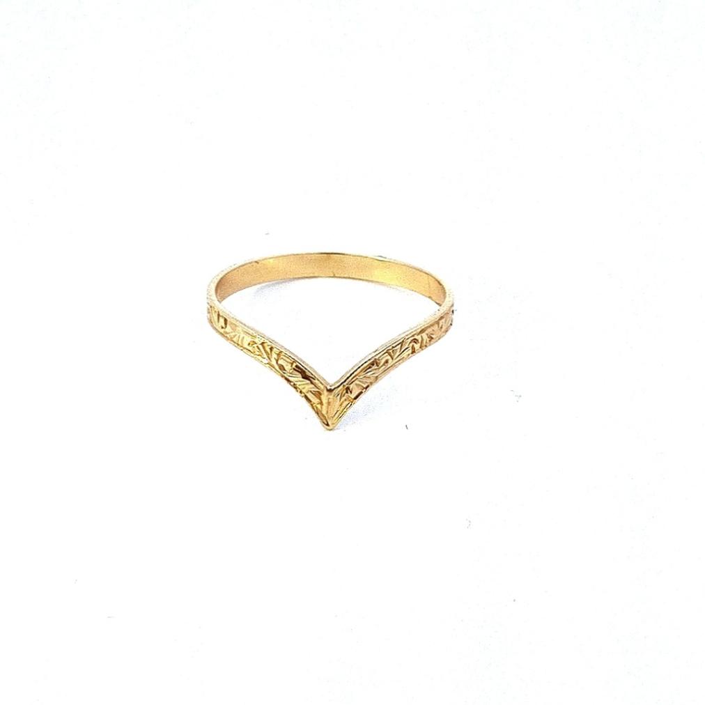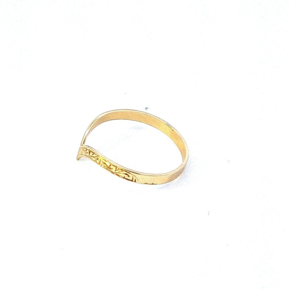 Zlatý prsten o ryzosti 585/1000, punc labuť , váha 1,56 g, velikost 61, v nejširším bodě 4 mm.
