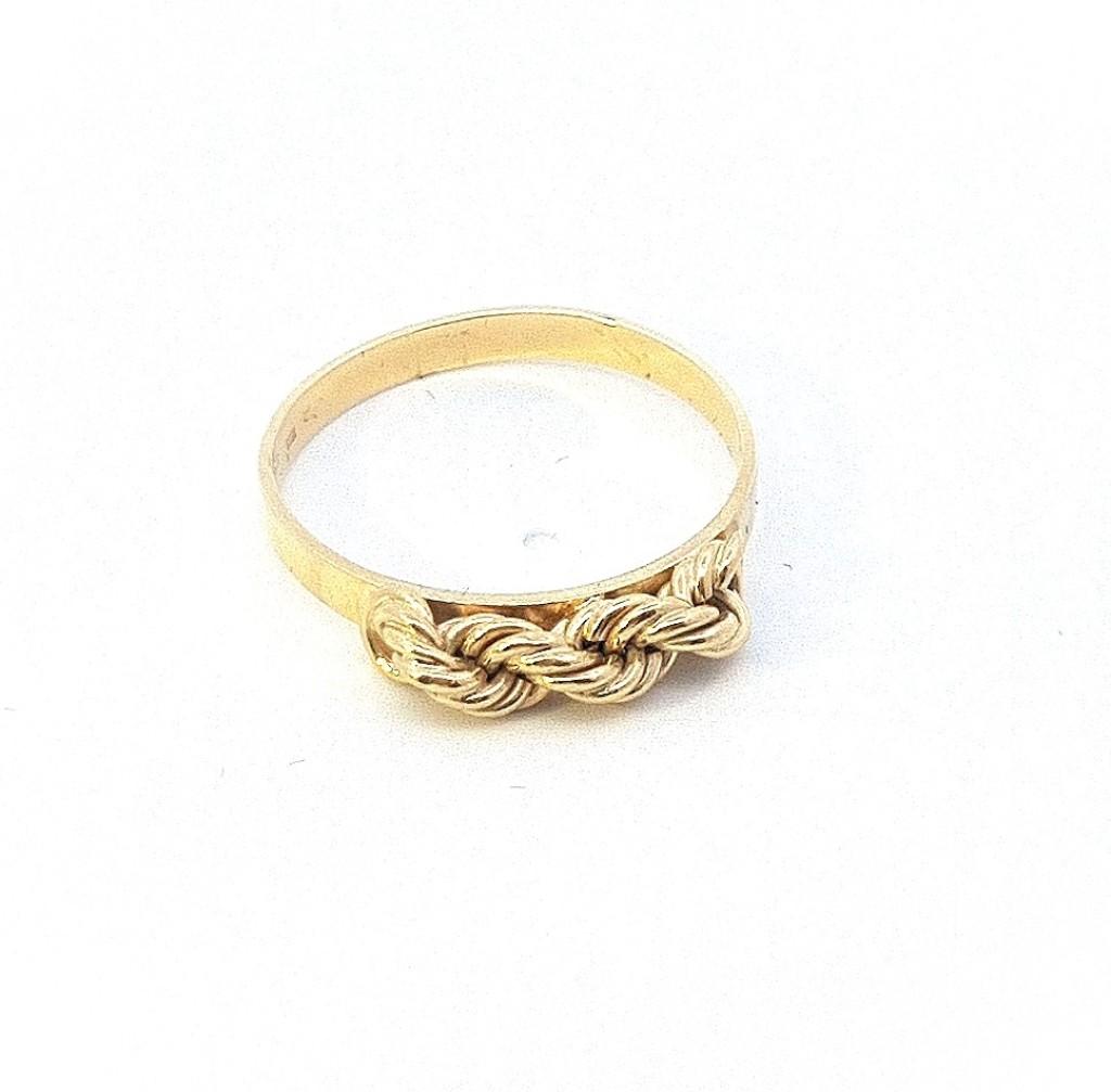 Zlatý prsten o ryzosti 585/1000, punc labuť, váha 2,24 g, velikost 61, v nejširším bodě 3 mm.