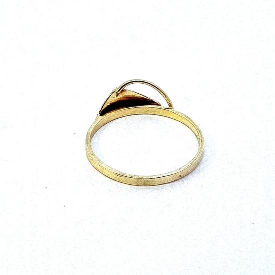 Zlatý prsten o ryzosti 585/1000, punc labuť, váha 1,76 g, velikost 62, v nejširším bodě 7 mm.