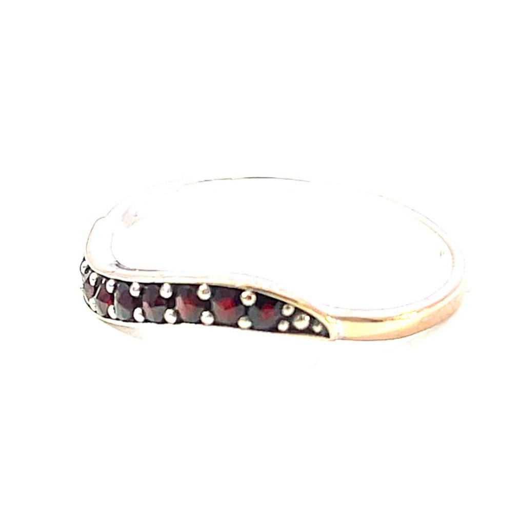 Zlatý prsten z bílého zlata s českými granáty, vel. 60,5