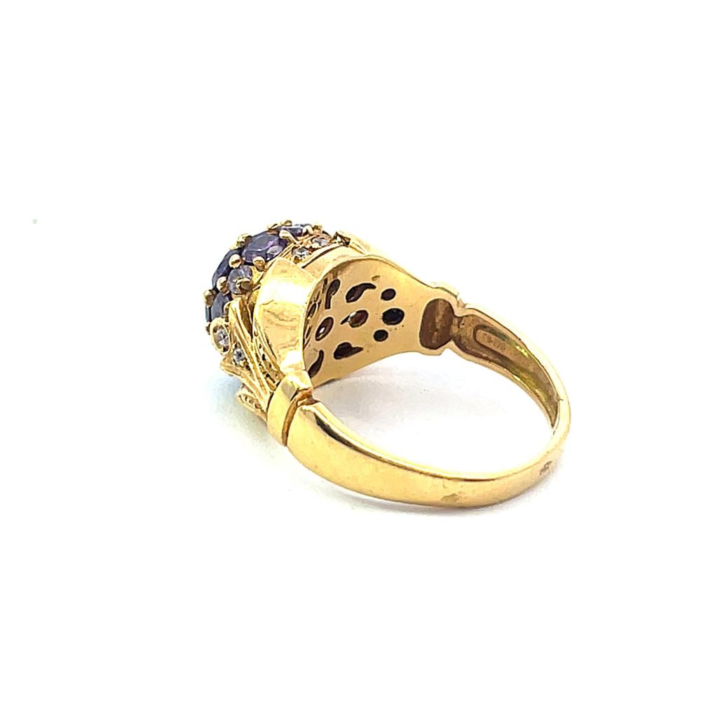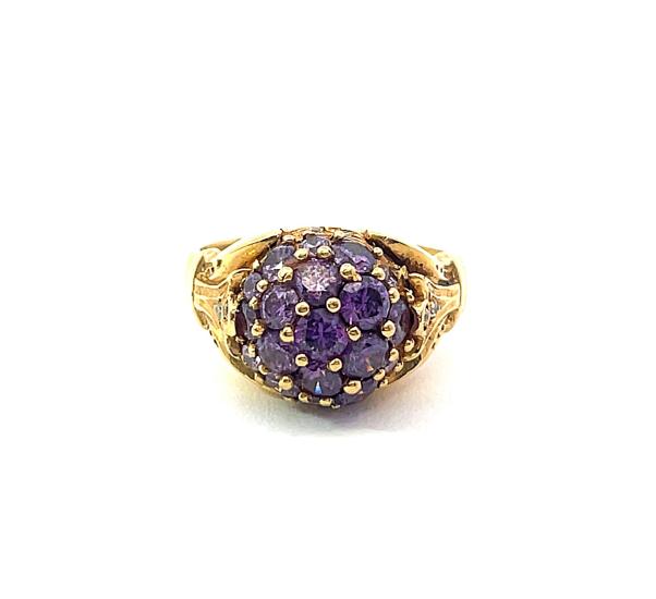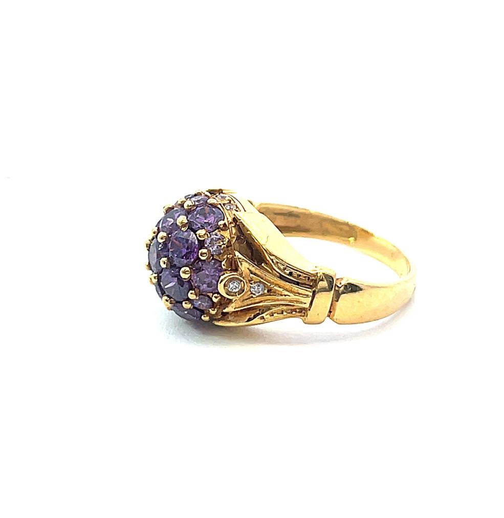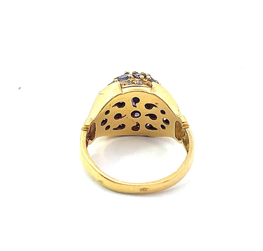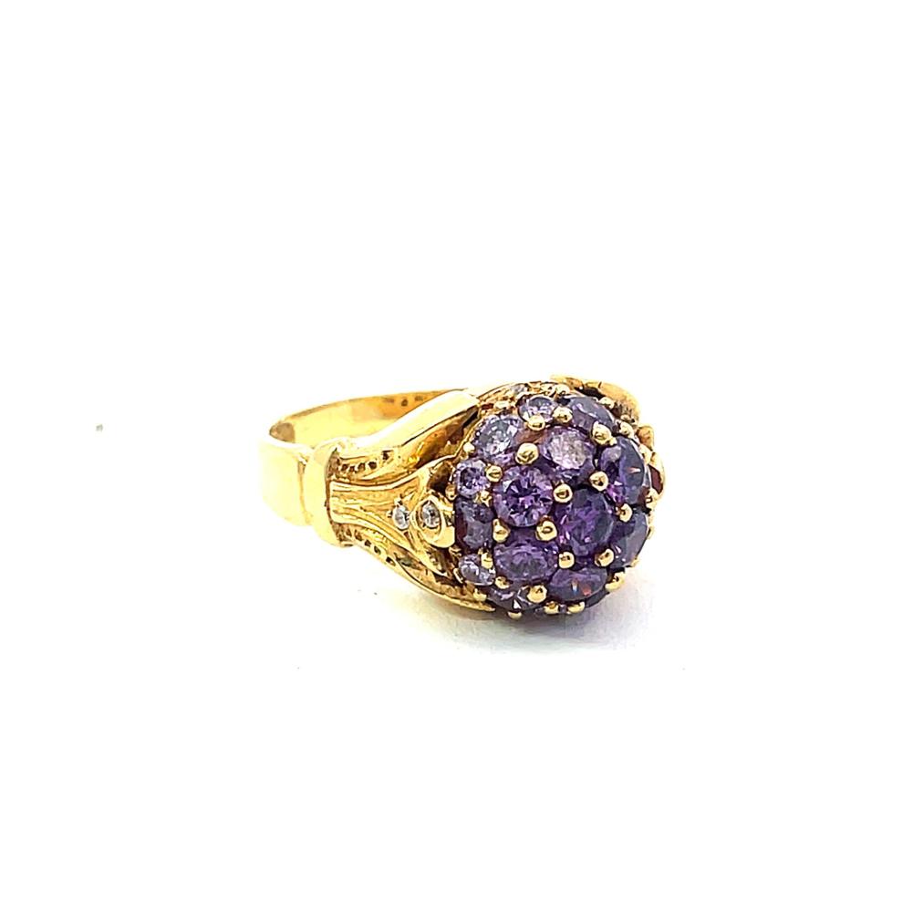 Zlatý prsten zdobený ametysty a zirkony 18k, vel. 55