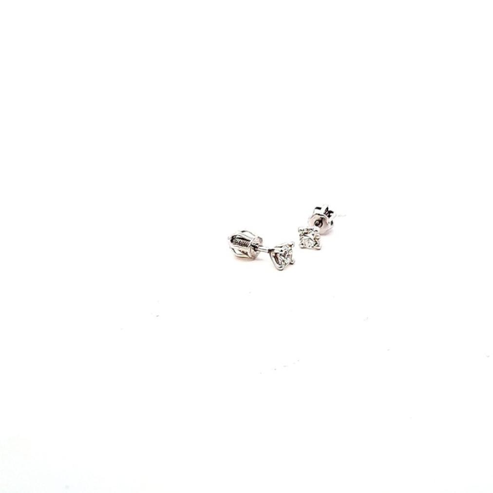 Náušnice z bílého zlata s diamanty. Ryzost 585/1000, punc labuť. Váha 0,84 g. Přírodní diamanty briliantového brusu celkem cca 0,36 ct.