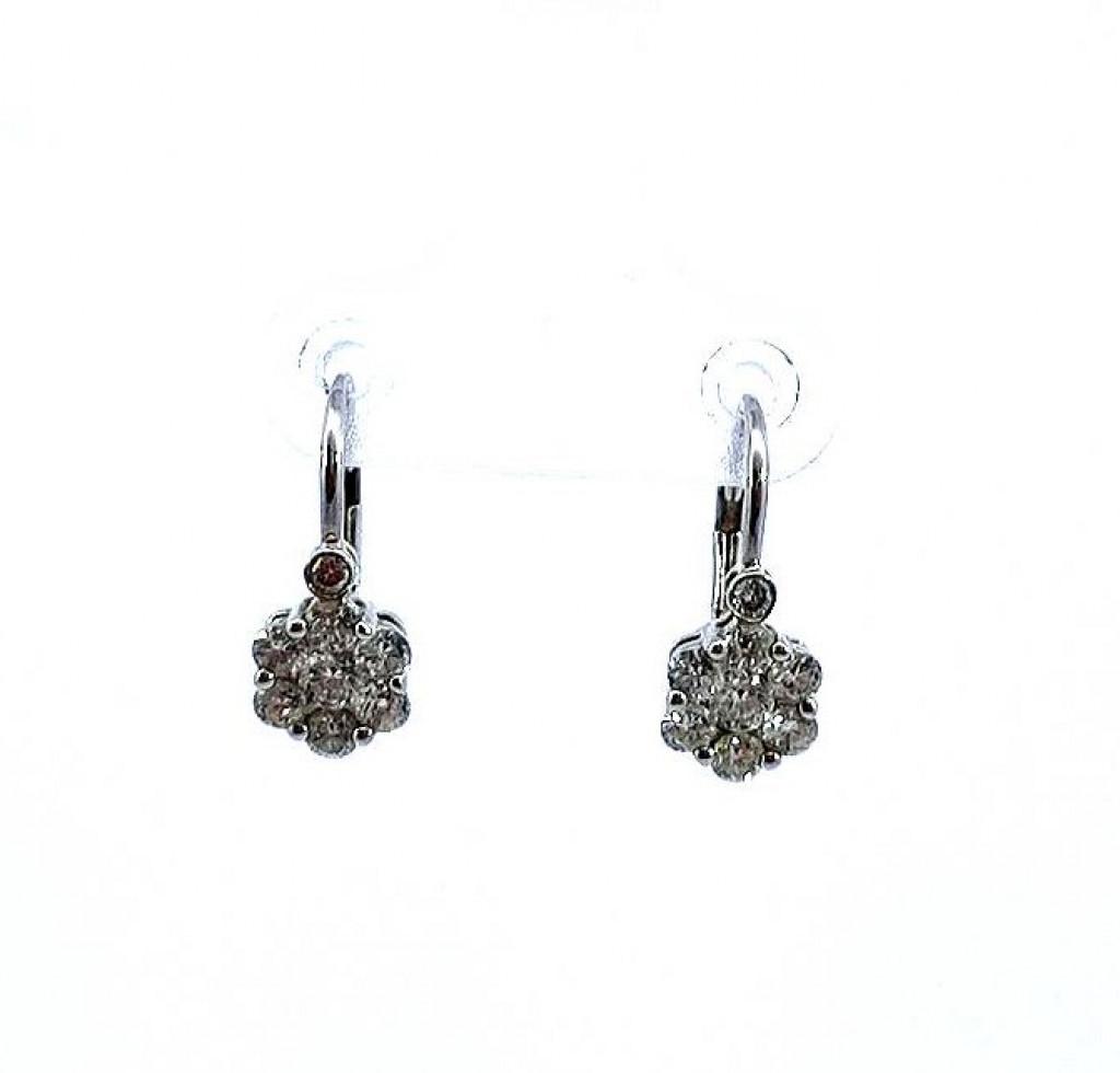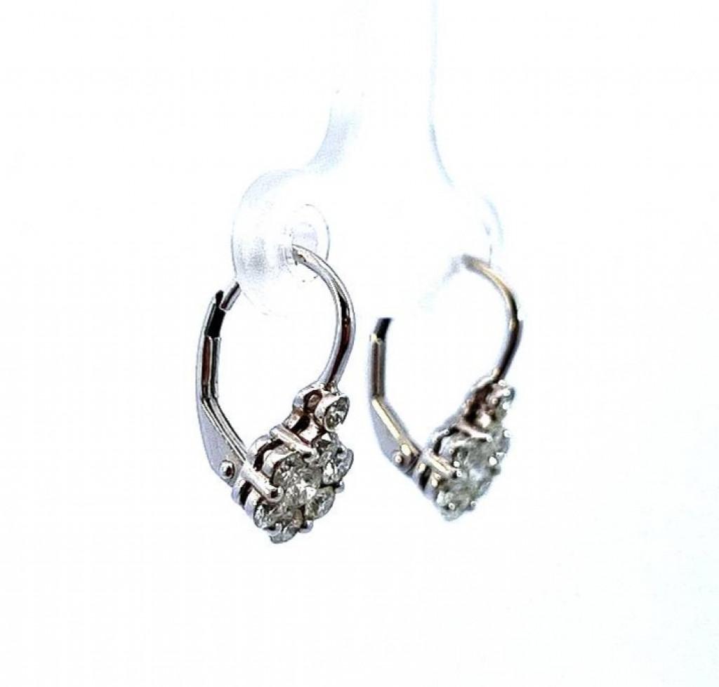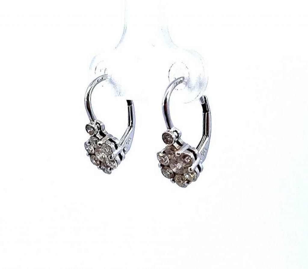 Zlaté náušnice o ryzosti 585/1000, punc labuť, váha 1,79 g , na výšku 15 mm, v nejširším bodě 6 mm, kámen - diamant cca 0,83 ct.