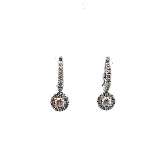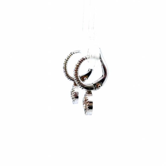 Náušnice z bílého zlata s diamanty, visací. Váha 3,09 g, ryzost 750/1000, punc kohout, výška 18 mm, v nejširším bodě 7 mm. Přírodní diamanty jsou briliantového brusu, celkem cca 0,58 ct. Čistota VS, barva G-H.