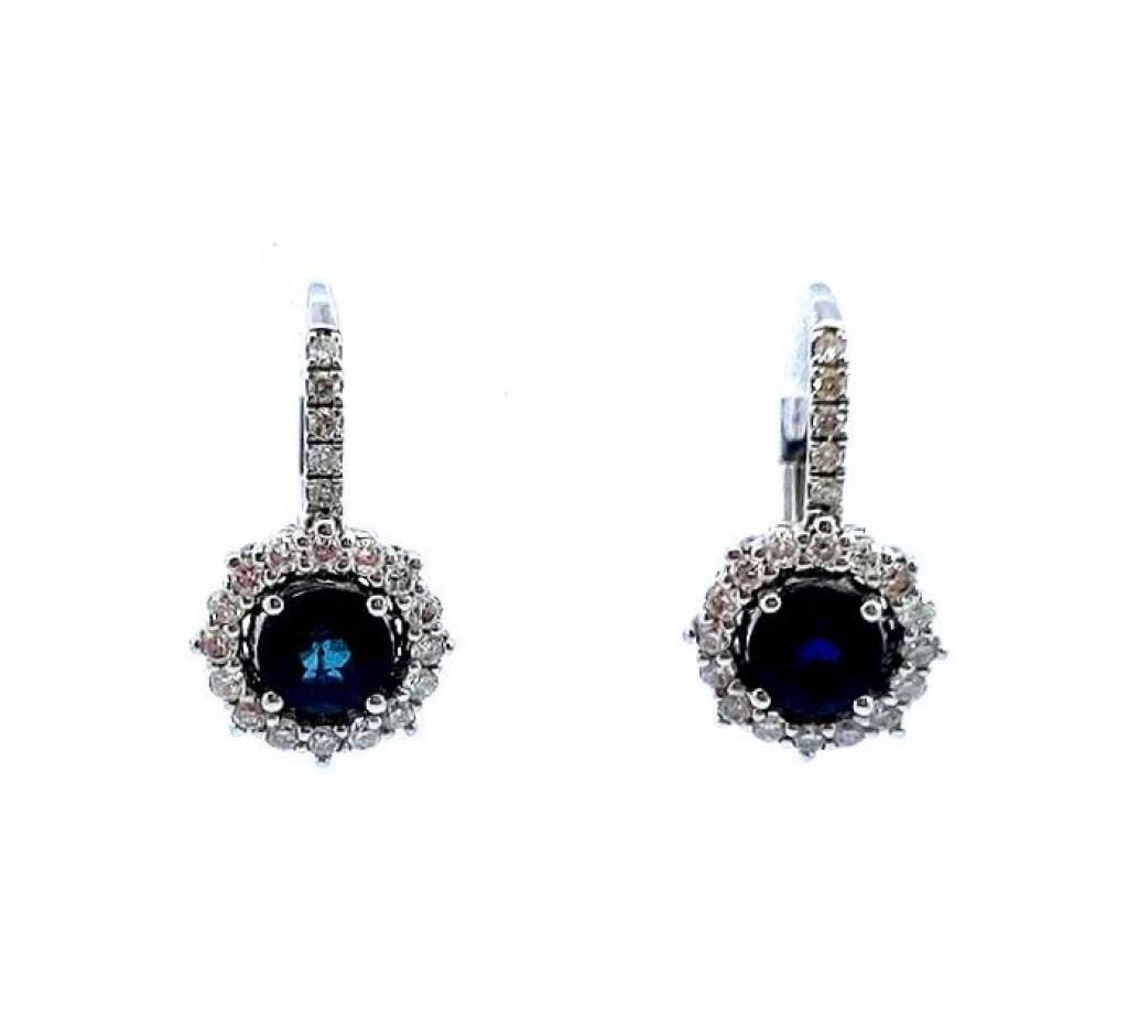 Náušnice z bílého zlata se safíry a diamanty, visací